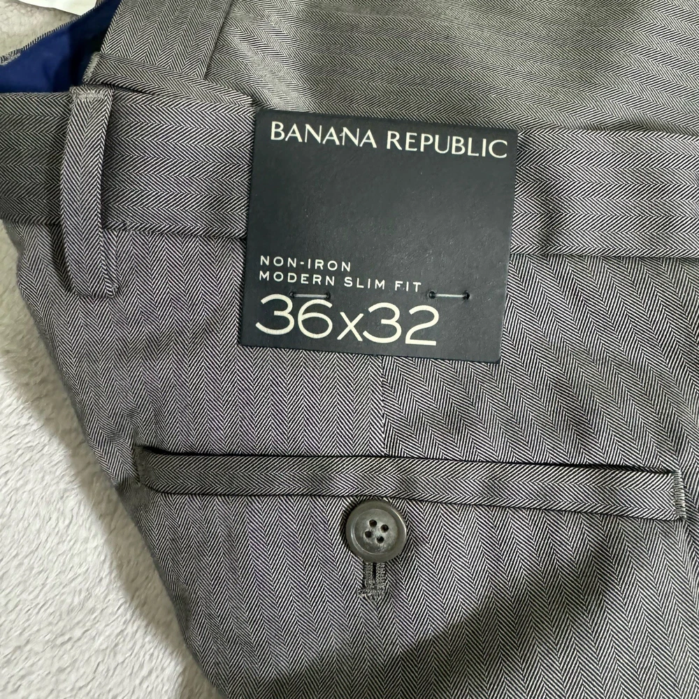 Elevate your wardrobe with these stylish and versatile Banana Republic dress pants. Perfect for any occasion, whether it be a business meeting, formal event, or a casual day out. These pants feature a slim fit design with a 36-inch waist size and a straight leg style with a 30-inch inseam. Made from a comfortable and stretchy blend of spandex and cotton, these pants are easy to care for and wrinkle-resistant. They also come equipped with slash pockets for added convenience. The flat front design and solid pattern give these pants a modern and preppy look, while the button and zipper accents add a touch of style. Whether you're heading to the office or a night out, these pants are sure to become a staple in your wardrobe.