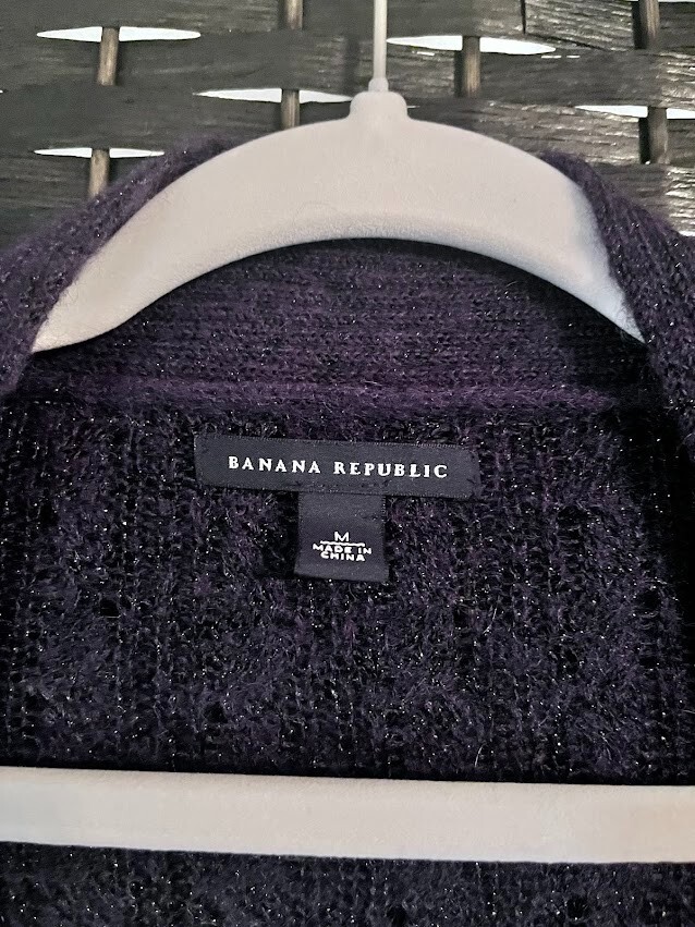 Add some sparkle to your wardrobe with this stunning Banana Republic cardigan. The slate blue color is perfect for any occasion, and the knit fabric type adds a touch of elegance to your outfit. The long sleeves and open front design make it the perfect addition to any sweater collection. This cardigan is made of a blend of polyester, nylon, mohair, wool, acrylic, and metallic materials. Whether you're dressing up for a night out or keeping it casual, this cardigan is sure to make a statement.