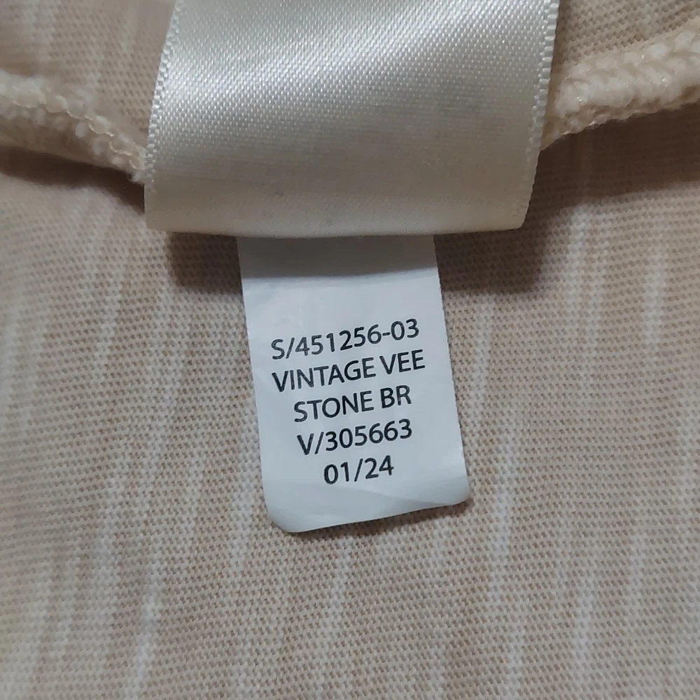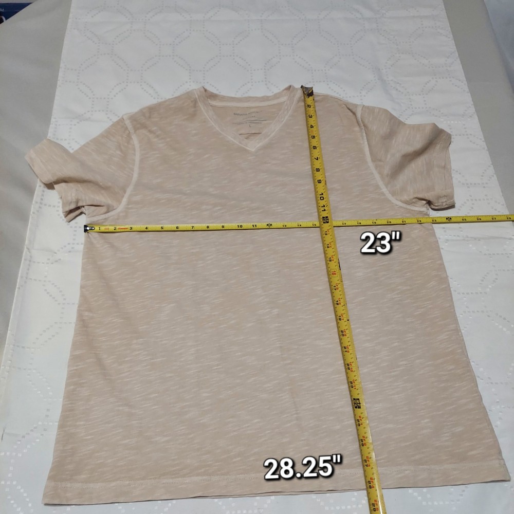 The Banana Republic Vintage Vee V-neck Cotton T-shirt in size Large is a classic and versatile addition to any man's wardrobe. Made from comfortable cotton material, this solid stone brown t-shirt features a V-neckline and short sleeves, perfect for the warmer seasons of summer, fall, and spring. The regular fit and machine washable care make it easy to wear and maintain, while the brand's reputation for quality ensures a durable and stylish piece.