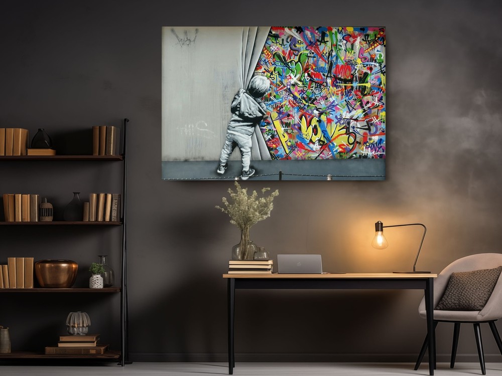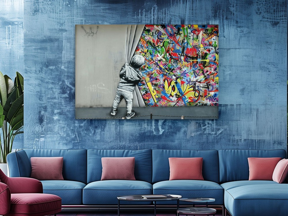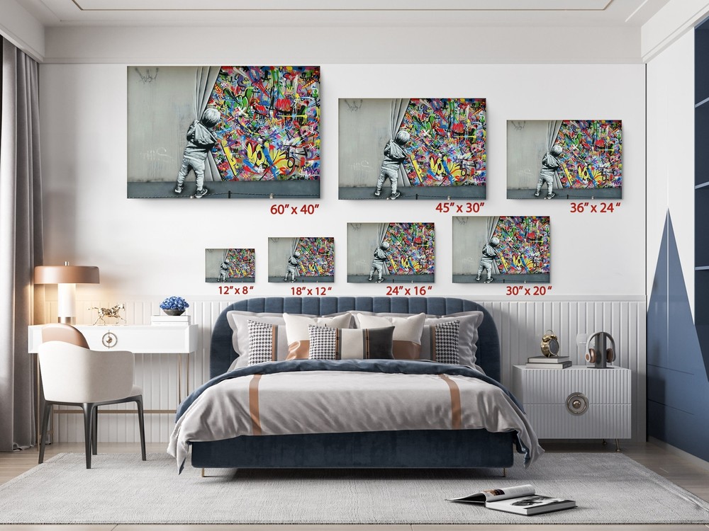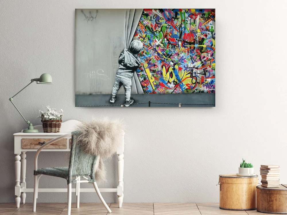 Banksy Canvas Art Kids Open Curtain Graffiti Print Home Decor Wall Art