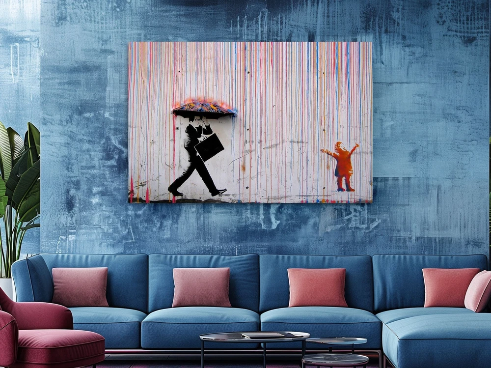 Banksy Colored Rain - Wall Art, Canvas Print, Home Decor