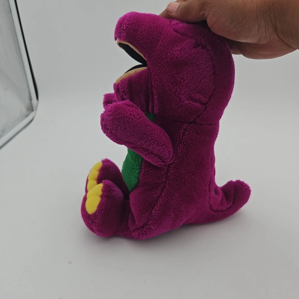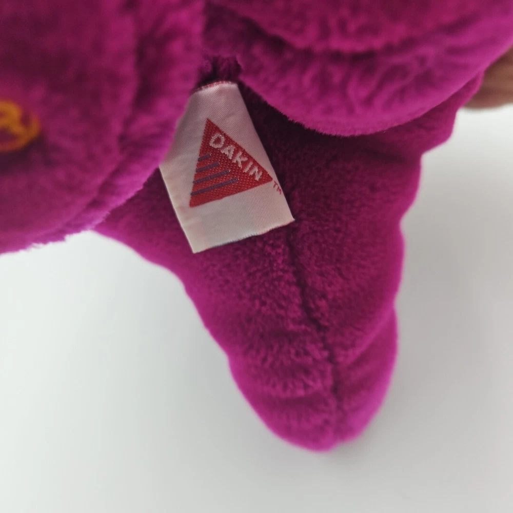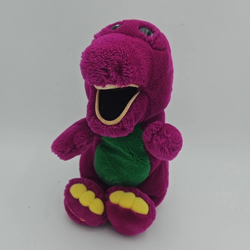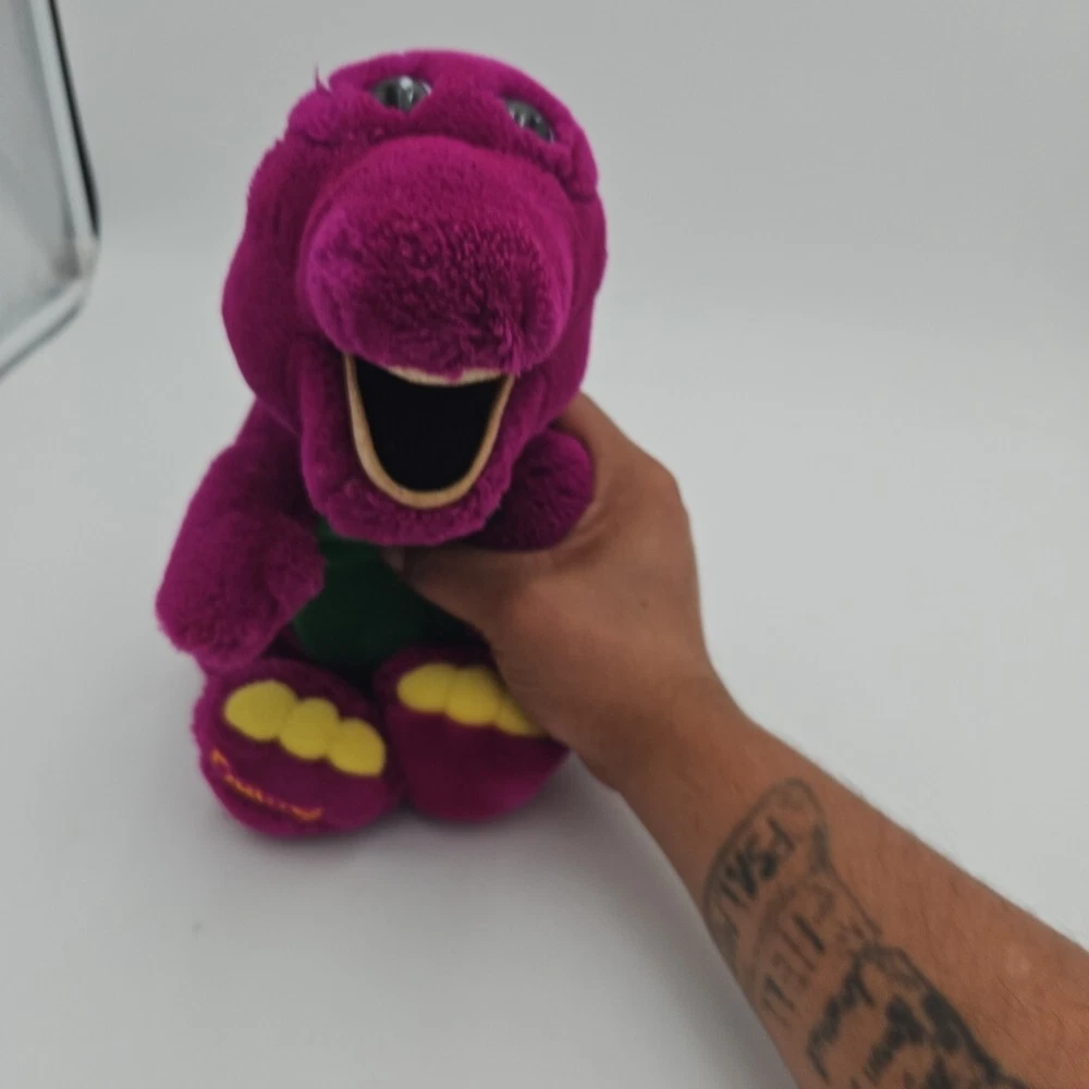 This vintage Barney plush toy from 1992 is a must-have for any collector or fan of the beloved children's character. Measuring 10 inches tall, this Daikin brand toy features Barney Lyons group and is perfect for children ages 4-11 years old. The bright and colorful design, along with the soft and cuddly texture, makes this toy a great addition to any collection or a beloved companion for a child. This Barney plush toy is sure to bring joy to anyone who remembers the popular children's show and loves collecting vintage toys.