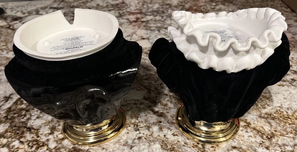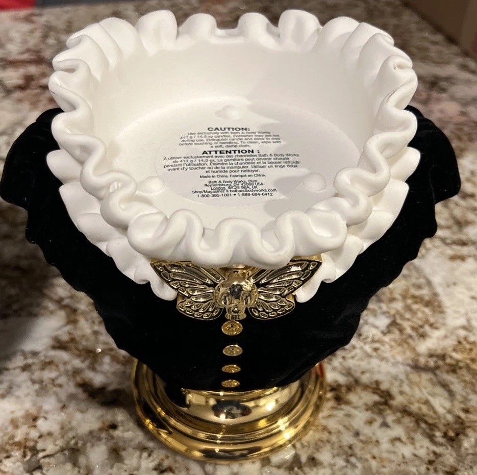 Excellent condition, ships fast! The Bath & Body Works Candle Holders are themed around Halloween, featuring a Headless Horseman, Madam Vampire, and Maid. These pedestal holders stand at 7.5 inches tall and are suitable for 3-wick candles. Perfect for adding a spooky touch to your home decor, these candle holders will create a festive atmosphere for the Halloween season. Ideal for displaying candles with a holiday theme, these decorative pieces will enhance the ambiance of any room with a touch of mystique.