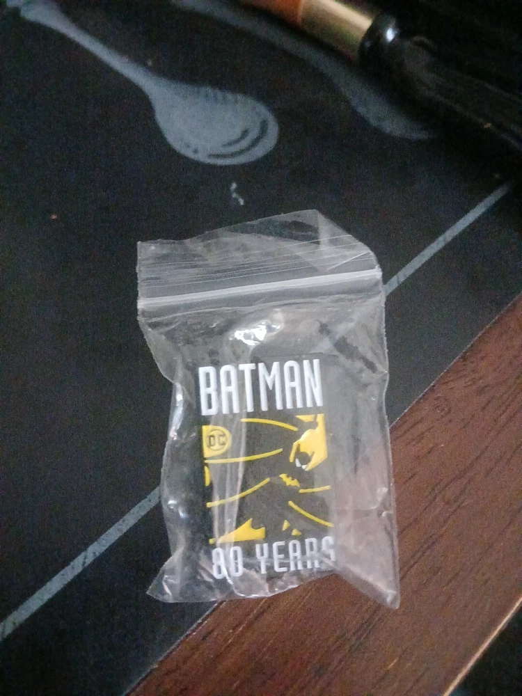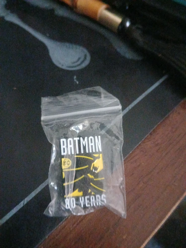 Celebrate the 80th anniversary of Batman with this collectible pin! The pin features the iconic Batman logo and is perfect for any fan of the Dark Knight. Add it to your collection of pins or wear it on your jacket or backpack to show off your love for Batman. This pin is a must-have for any Batman collector or fan. It is a high-quality, officially licensed product that is perfect for displaying or wearing. Get yours today and show off your love for Batman!