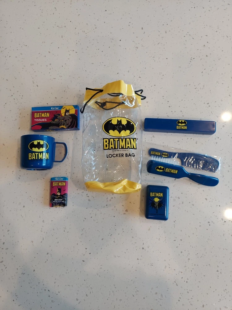 Batman Kid Care Locker Bag with Seven Personal Care Items 1990's