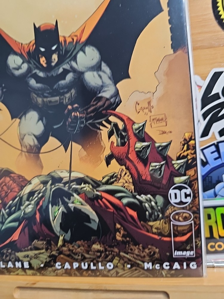 Dive into the dark and gritty world of Gotham with "Batman / Spawn #1," featuring the iconic Greg Capullo & Todd McFarlane Batman cover. This February 2023 issue from DC Comics brings together the formidable cast of Batman's universe, including villains like Joker and Bane, alongside the mystical presence of Spawn. The artistry of Dave McCaig, Todd McFarlane, and Greg Capullo sets the stage for an unforgettable visual experience.Crafted for fans of modern superheroes, this comic is a treasure for collectors and enthusiasts alike. With its rich storytelling from writers like Jonathan Glapion and Todd McFarlane, and a diverse array of characters like Catwoman and Nightwing, the series promises to deliver thrilling adventures. This English language issue, part of the Batman / Spawn series, is a must-have addition to your comic collection.