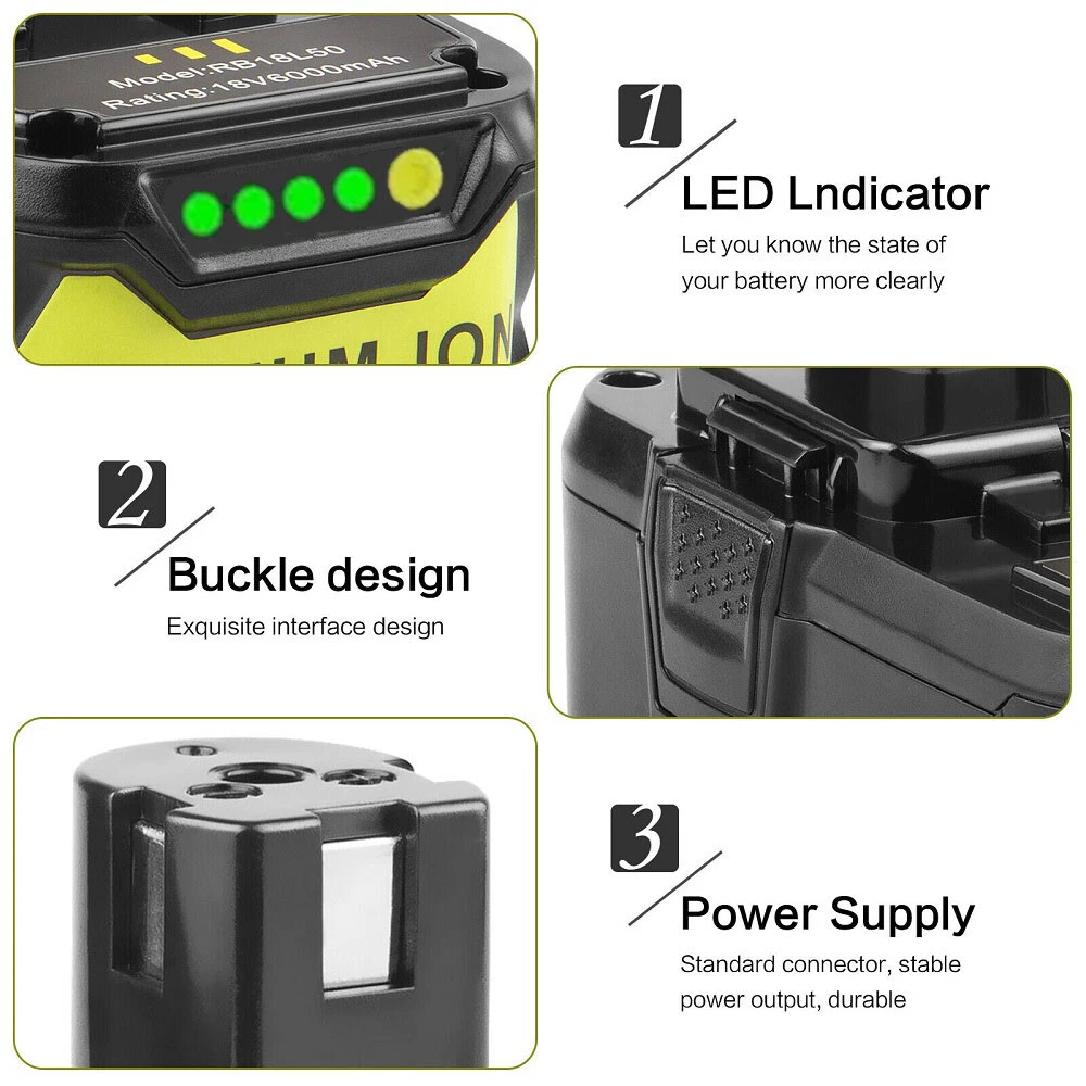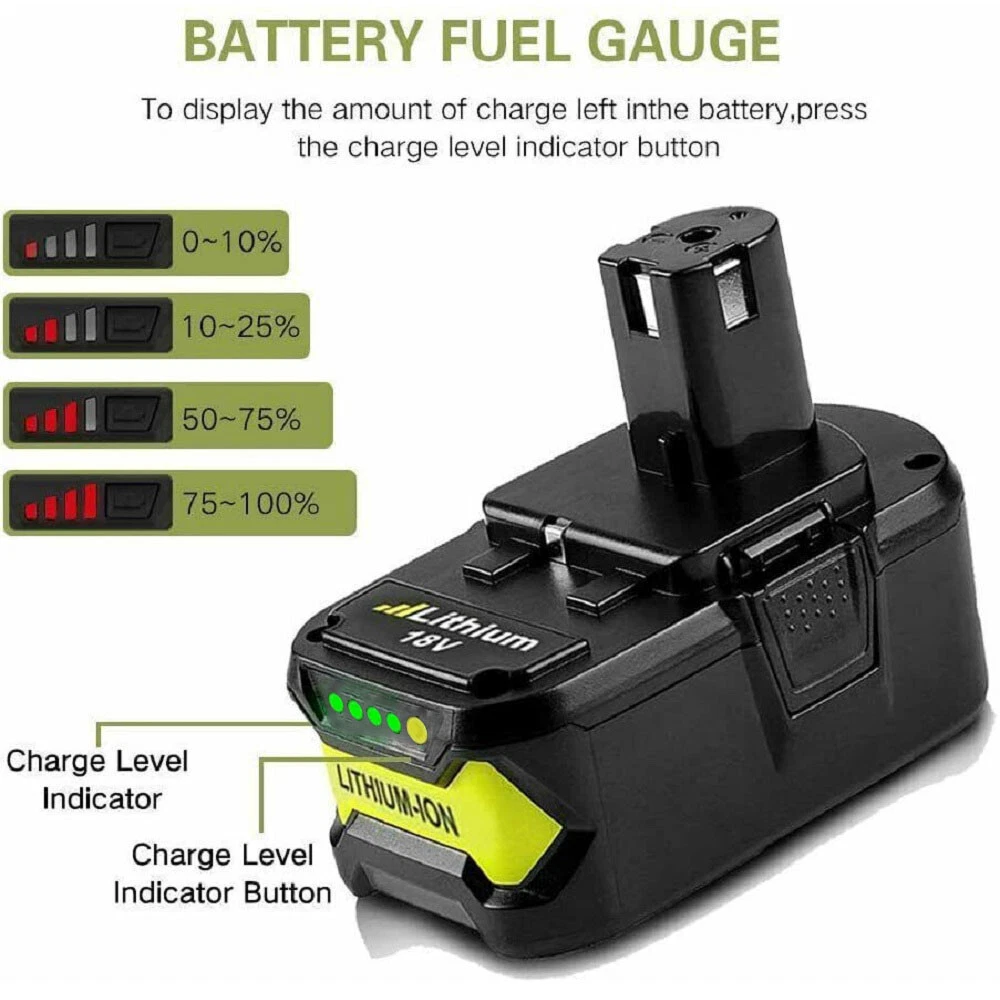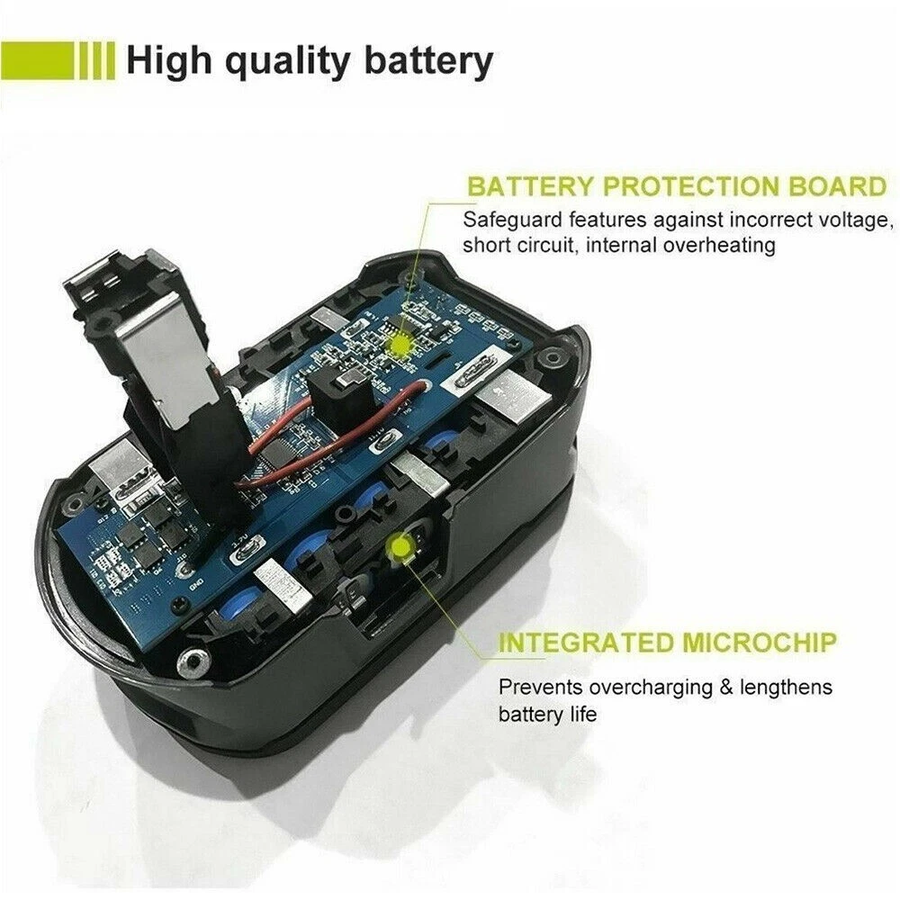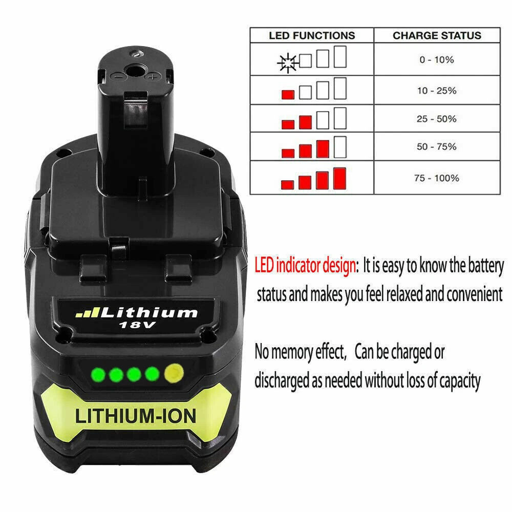 Store category Sign Up Now ! You may also like Top-toolbattery Product Description Product Details: Battery Type: Li-ion Voltage: 18V Capacity: 3.6/6.0/8.0/9.0/12.0Ah Condition: Brand New with High Quality What's Included:(Choose the capacity and quantity you need) 1-4X 3.6Ah/6.0Ah/8.0Ah/9.0Ah/12.0Ah replacement Lithium Ion Battery 1-4X Manual Compatible Battery: For RYOBI ONE 18-Volt Battery BPL-1815, BPL-1820G, BPL18151, BPL1820, P102, P103 P104, P105, P106, P107, P108, P109 Compatible Fit Model: For RYOBI ONE 18-Volt Cordless Drill Power Tool BID-1801M, BID-180L, BID1821, BIW180 CAD-180L, CAG-180M, CAP-1801M, CCC-1801M, CCC-180L, CCD-1801, CCG-1801M, CCG-180L, CCS-1801/DM, CCS-1801/LM, CCS-1801D, CCS-1801LM, CCW-180L CDA-18021B, CDA1802, CDA18021B, CDA18022B, CDA1802M, CDC-181M, CDI-1802, CDI-1802M, CDI-1803, CDI-1803M CID-1802M, CID-1803L, CID-1803M, CID-182L, CID-183L CFA-180M, CFP-180FM, CFP-180S, CFP-180SM CHD-1801M, CHI-1802M, CHP-1802M, CHV-180L, CHV-18WDM CJS-180L, CJS-180LM, CJSP-1801QEOM, CJSP-180QEO OBL-1801, OCS-1840, OGS-1820, OHT-1850, OLT-1830, OPS-1820, ORS-1801, OWD-1801M P200, P201, P203, P204, P206, P2060, P208B, P210, P211, P220, P221, P230, P234G, P236, P240, P241, P246, P271 P2000, P2002, P2100, P2102, P2105, P2400, P250, P2500, P2600, P2603 P300, P301, P310, P3200, P3300, P3310, P340, P400, P410, P420, P430 P500, P501, P506, P510, P514, P520, P521, P522, P530, P540, P570 P600, P610, P631K, P650 P700, P701G, P703, P704, P710, P711, P715, P716, P730, P731, P740, P741, P780 P813, P835 Advantage On-board fuel gauge allows you to easily check your charge Lower resistance battery cells for maximum power delivery HP communication technology paired with Brushless tools maximizes performance in all applications Stands up to frigid weather conditions Lithium-ion chemical composition resists drainage when idle Recharge on any 18V ONE+™ dual-chemistry charger Easily snaps into place and detaches with quick-release easy-access latches Fade-free power for maximum performance Battery delivers superior runtime power and performance HP Performance does not apply to Brushless Lawn & Garden Products Notice for storage: Please keep battery away from heat and metal accessories Please give a full discharge and charge every month during storage time Don't stay battery in charger after charging Don't store in the damp and direct-sun exposure Dear friends: If you have any question of the orders and products, please contact us through Ebay message. We will reply within one business day. Zahlung Lieferung Rückkehr Politik Kontaktiere uns Über uns Payment * We only accept PayPal. * All major credit cards are accepted through secure payment processor PayPal. * We ship to your eBay or Paypal address. Please make sure your e eBay and Paypal address is correct before you pay. Delivery details * Items are dispatched within 24 hours(except weekends and holidays) and shipped from United States. * Orders from the United States will all be shipped out via USPS/UPS. The shipment usually takes 2-4 business days (Saturday and Sunday excluded). * Local pick up is not available. * All items will be shipped to buyer's PayPal address. Please check your PayPal address is correct before pay . Terms of sales Welcome to our store! We are a professional worldwide wholesale factory. High product quality, reasonable prices, excellent customer service and a reliable credit standing is our tenet.If you like our products, please add my eBay shop to your "My Favorites" list. All the products we are selling include 10 years factory warranty , don’t cover items that have been abused, burned and damaged in any form . * if you has any problems with this item,please email us first then we can solve it in a friendly way ,once we check it is indeed a problem with the item,we will full refund or resend you,and in order to save your time you don't need to return this products to us! * For all returned products, buyers MUST contact us for the returning address. * In all cases, sellers pay shipping fees to return products for exchange or refund. Refund will be made upon receipt of the returned item Contact us Dear buyers,we appreciate your business, if you are satisfied with our service , please leave us a Positive feedback and rate the details of the transaction (Detailed Seller Ratings) with a " Pefect Stars ". We focus on designing and manufacturing various kinds of power tool batteries with high quality and competitive price. We will do our best to serve you! Am 24.09.21 hat der Verkäufer die folgenden Angaben hinzugefügt: Am 04.11.21 hat der Verkäufer die folgenden Angaben hinzugefügt: Am 04.11.21 hat der Verkäufer die folgenden Angaben hinzugefügt: