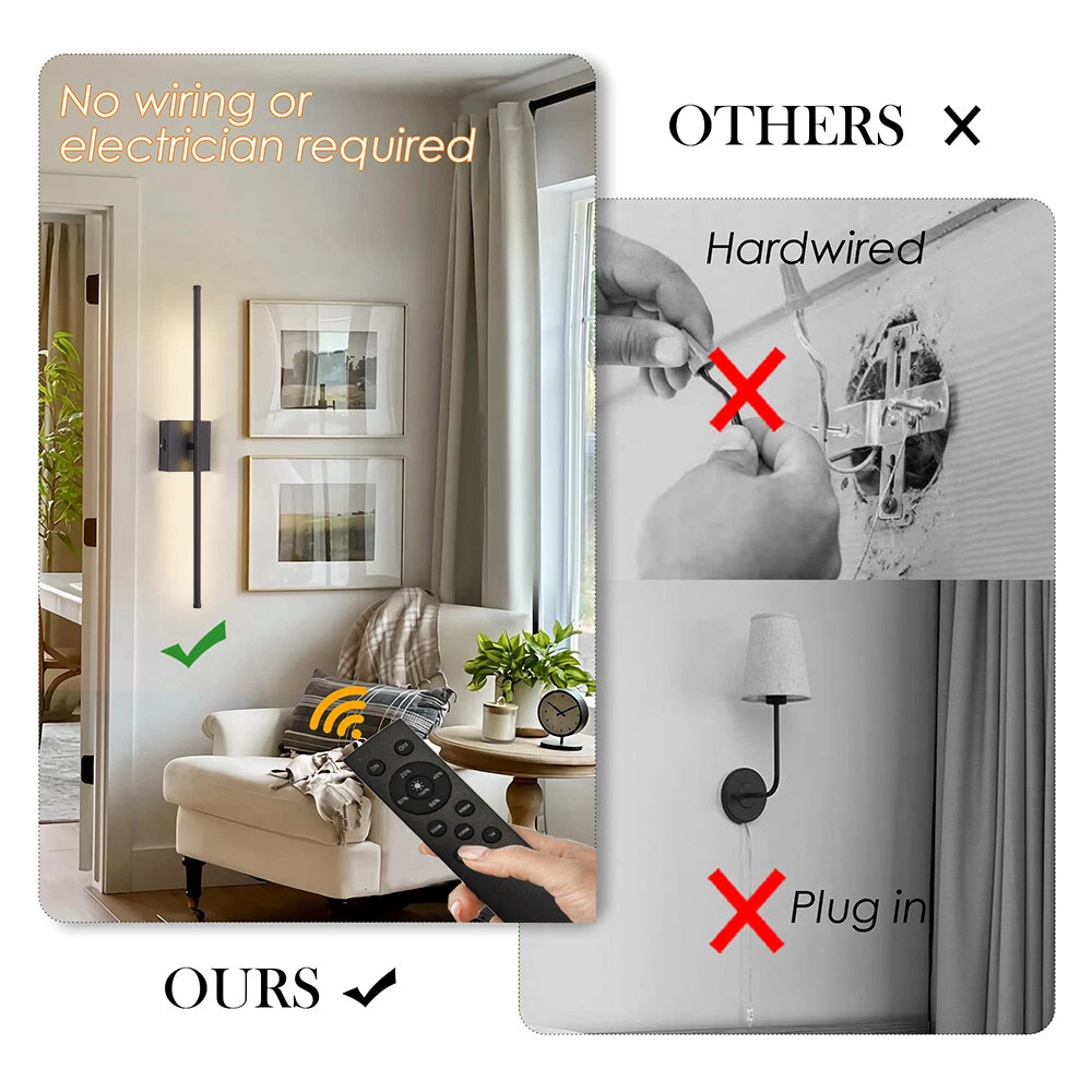 Product Description Description : Rechargeable LED Wall Sconce: With the 5000mAh battery, the light is rechargeable with USB charging cable(Suitable for Type-C port, charging plug is not included). Remote control & Touch Control: Battery-operated sconces with a multi-function remote control, providing a variety of modes of choices to meet your different needs for lighting requirements. You can also manually touch the switch button to control the light. Stepless Dimming Brightness: The battery operated wall sconces features stepless dimming from 10% to 100%, and 3000K-4000K-6000K color temperature selection, making it more versatile than non-dimmable lights. You can easily select the perfect brightness to suit various needs, whether for a soft ambient glow or brighter task lighting. 350° Rotational Flexibility: With a convenient 350° rotation capability, these battery operated wall sconces offer enhanced flexibility in directing light wherever it's needed. Whether you want to highlight a specific area or adjust the ambiance, the rotational feature ensures effortless customization, making them perfect for various spaces in your home. Wide Application: It can be assembled in any corner of the home to provide fascinating lighting or used as emergency lighting during power outages. Ideal for living room, bedroom, corridors, hallway, stairway, entryway, dining room, office, dressing table, TV wall, and other places. It’s also perfect for being a holiday gift to deliver a convenient and warm lighting experience for your friends. Easy to Install: Indoor battery operated LED wall lights require no wiring and no electrician, and all mounting hardware is included for quick and easy installation of battery wall sconces. Specification : Product Type: Wall Sconce Material: Aluminum Material Charging Time: About 6hrs Shell Color: Black Rotate Degree: 350° Timer Control: 0.5 / 1hrs Length: 71cm / 28in Charging Method: Type-C Charging Control Method: Remote C ontrol & Touch Control Brightness Adjustment: Stepless Dimming, 20%, 40%, 60%, 80%, 100% Light Color: Warm White (3000K), Neutral White (4000K), Cold White (6000K) Package Included: 2 x Wall Sconce 2 x USB Cable (NOT INCLUDED PLUG) 2 x User Manual 2 x Remote Control Note: Due to the different monitor and light effect, the actual color of the item might be slightly different from the color showed on the pictures. Thank you! Please allow 1-2cm measuring deviation due to manual measurement. Payment Shipping Returns Contact Us 1. This is the payment method we can accept: Paypal 2. You can checkout and pay immediately after the auction ends or you complete the purchases. If you need an eBay invoice sent to you by Email, please contact us before making payments. 3. Once the checkout is completed, you will not be able to include any additional purchases. We start to process and fulfill your order once payment is received. New purchases after the checkout will be processed separately. 4. Payments are expected within 4 days after the order is confirmed. Unpaid item (UPI) strike may be filed with eBay upon non-receipt of payment. 1. How much is the shipping & handling (S&H)? Our shipping and handling charges are clearly stated in the Shipping and Payments section of the item page, and we provide Free Shipping for most items. 2. For multiple purchases, the combine shipping discount will be automatically calculated when you check out and pay all of your purchases together. Items checked out separately may not be combined and the combine shipping discount will not be offered automatically. 3. Please make sure the correct Ship-To address is entered before checking out. Once the payment is completed, you may not be able to change the shipping address. We shall not be held responsible for any wrong or undeliverable addresses. 4. We usually ship within 1-2 business days of receiving cleared payment. 1. We put buyer's satisfaction at top priority. If you're not pleased with your purchases, we'll be happy to make an exchange or refund the item total price less Shipping and Handling (S&H) charges within 30 days of your purchases. 2. For any Exchange, Refund or Return, the item must be in its original condition, including the box, packaging, and all the accessories or gifts. 3. We'll provide prepaid return shipping label if the return is a result of our error. Postage reimbursement is offered only on standard mails, and it needs to be approved by our staff prior to returning. 4. Please allow up to 7 business days for returns to be processed. 5. Shipping and Handling (S&H) charges are not refundable. 1. Customer satisfaction is very important to us and our feedback rating reflects this satisfaction. If you have any question or concern, please contact us via eBay message. 2. We respond to all eBay messages as quickly as possible. Though your question will usually be answered very soon, please allow us up to one business day before you start thinking your message is neglected or the reply is avoided, because there would be time difference, non-working hours or public holidays that have prevented us from making an instant response. Payment 1. This is the payment method we can accept: Paypal 2. You can checkout and pay immediately after the auction ends or you complete the purchases. If you need an eBay invoice sent to you by Email, please contact us before making payments. 3. Once the checkout is completed, you will not be able to include any additional purchases. We start to process and fulfill your order once payment is received. New purchases after the checkout will be processed separately. 4. Payments are expected within 4 days after the order is confirmed. Unpaid item (UPI) strike may be filed with eBay upon non-receipt of payment. Shipping 1. How much is the shipping & handling (S&H)? Our shipping and handling charges are clearly stated in the Shipping and Payments section of the item page, and we provide Free Shipping for most items. 2. For multiple purchases, t
