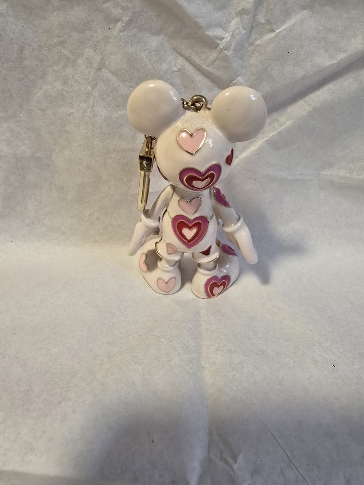 New without box. Has never been used. A beauty pink Mickey Mouse bag charm key ring with red hearts. Great for Valentines Day ! Really cute.