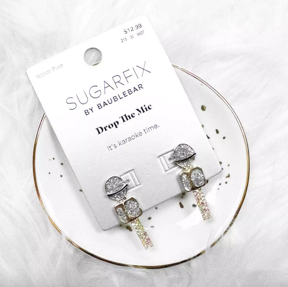 Sugarfix by Baublebar "Drop The Mic" gold rhinestone microphone music earring studs. New with tags. Orders are shipped in 1-3 business days. Packaged with care!