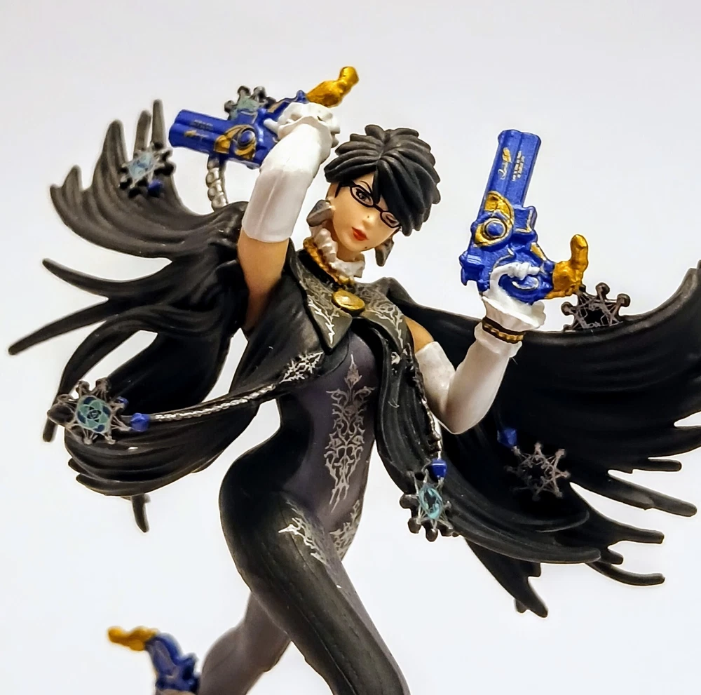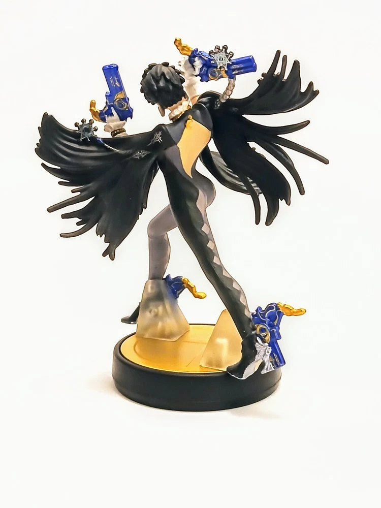 Short-haired version of Bayonetta, the sexy witch who battles angels and demons! This NFC figurine is compatible with the Nintendo Switch and 3DS, allowing you to scan the figurine's bottom stand to get extra features in games or extra players in games such as Super Smash Brothers. It's been a long time since I've used her, but I remember being able to get some kind of powers from her in a Kirby game? Not sure if that's right or not. Either way, character is great shape, no apparently flaws or defects. The painted detailing is very intricate and high quality. A great gift for a fan of Bayonetta to have on display, as well as some extra perks for those who play vintage consoles!