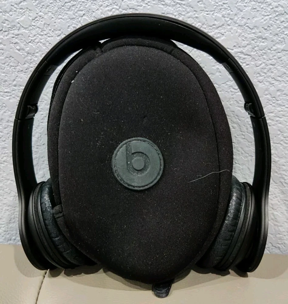 Case and headphones only. Headband slightly coming off, needs new earmuff pads. Fully functional headphones Enjoy your music like never before with these Beats by Dr. Dre Solo HD over the ear headphones in black. These headphones are perfect for those who want to experience high-quality sound and comfort. They come with a 3.5mm jack for easy connectivity and are compatible with most devices. The sleek black design is stylish and modern, making them perfect for everyday use. Experience your favorite tunes with clarity and precision with these Beats by Dr. Dre Solo HD headphones. The ear-cup design ensures that you can enjoy your music without any distractions, while the comfortable fit makes them perfect for extended listening sessions. Whether you're at home or on the go, these headphones are sure to provide you with an exceptional listening experience.