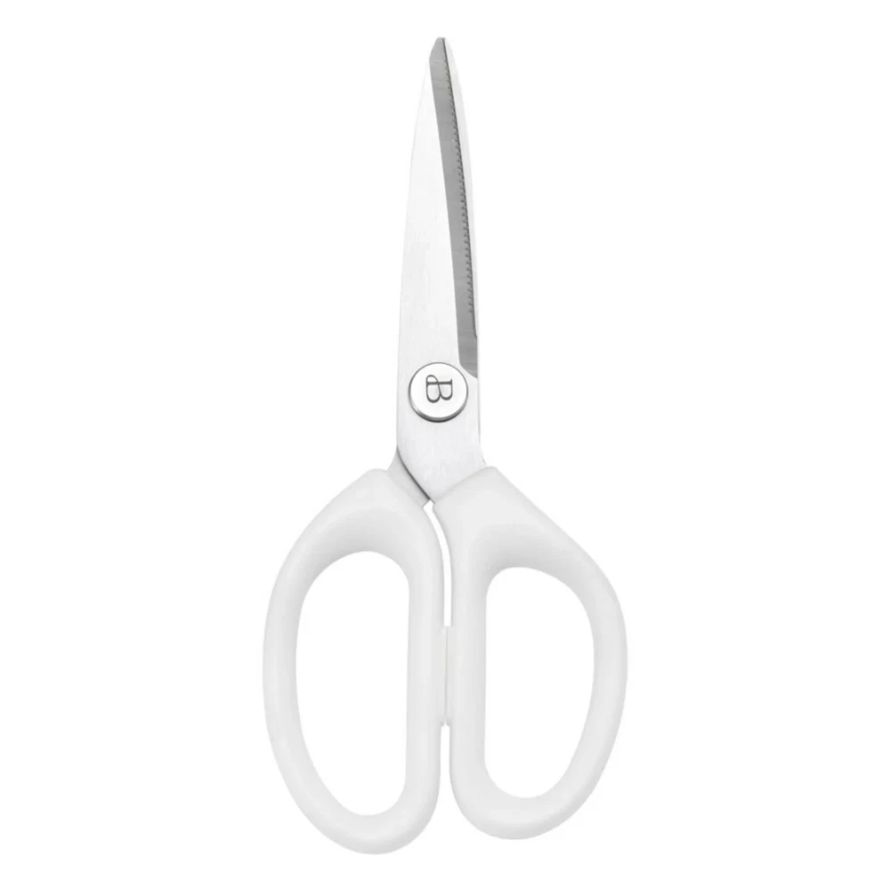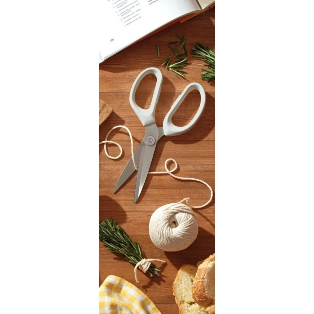 Beautiful 12 Piece Knife Block Set w/ Soft Ergonomic Handles by Drew Barrymore Purposeful tools create purposeful kitchen moments. The Beautiful 12 Piece Knife Block Set features a variety of knives and all-purpose shears to slice, dice, mince, cut, and more. Innovative knives and scissors feature white soft grip handles with our signature gold accents that fit comfortably in your hand. Durable stainless steel blades feature a stick resistant, resin coating that limit food from adhering to the knife and allow for easier, more efficient cutting. Store and display in our signature knife block that will look beautiful on your kitchen counter. 12 Piece Knife Block set includes: 8-inch chef knife, 5.5- inch serrated utility knife, 5-inch Serrated Santoku knife, 3.5- inch paring knife, (6) 4.5-inch Steak Knives, All Purpose Shear, White Block. Knives and shears are hand-wash only; wipe block clean with a damp cloth. Lifetime Limited Warranty. BPA-free. 12 PIECE KNIFE BLOCK SET INCLUDES: 8 inch chef knife, 5.5 inch serrated utility knife, 5 inch Serrated Santoku knife, 3.5 inch paring knife, (6) 4.5 inch Steak Knives, All Purpose Scissors, White Knife Block STICK RESISTANT: Each blade is crafted from stainless steel and features a stick resistant, resin coating that limits food from adhering to the knife; this allows for easier, more efficient cutting. COMFORTABLE HANDLES: Ergonomically designed handles feature a soft grip for comfort in the hand while using. RAZOR SHARP: Each knife features a high-carbon, stainless steel blade which ensure the knife retains its ultra-sharp edge and making food prep effortless. EASY CARE: Hand wash with warm water and a mild detergent. Rinse and dry immediately. Stainless steel knives are not dishwasher safe. Beautiful 12 Piece Knife Block Set with Soft-Grip Ergonomic Handles White and Gold by Drew Barrymore: 5306062 Specifications Features Ergonomic Handle, Rust Resistant Material Metal - Stainless Brand Beautiful Assembled Product Dimensions (L x W x H) 12.50 x 3.30 x 12.00 Inches