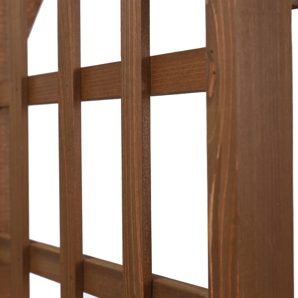 Specifications: 1. Material: Fir 2. Color: Dark Brown 3. Overall Size: (62.99 x 23.62 x 84.65)" / (160 x 60 x 215)cm(L x W x H) 4. Width Of Side: 45.7cm 5. Intermediate Clearance (Spacing On Both Sides): 130.8cm 6. Product Design: Complete Disassembly, Column Division, Iron Plate Connection 7. Weight: 33.07lbs / 15kg Package Includes: 1 x Dark Brown Wood Arch 1 x Hardware Assembly Accessories 1 x Specification Introductions: Looking for a trellis that support the vines in your garden? This Beautiful And Practical Garden Arch is here to help. Beautifully crafted, with flat top, it will add style to any backyard or garden while providing plenty of support for your climbing flowers, vegetable plants, rose bushes, and vines. Sturdy iron frame with powder coated finish is rustproof to offer years of beauty. After being staked into the ground, this trellis is free-standing for fast and easy installation. Features: 1. Provide plenty of support for your climbing flowers, vegetable plants, rose bushes, and vines 2. Beautifully crafted, with flat top 3. Add style to any backyard or garden 4. Sturdy, rustproof iron frame with powder coated finish lasts for years 5. Simply stake into the ground for fast and easy installation