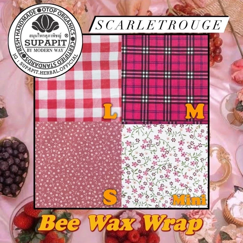 Bee's Wrap Organic Reusable Coconut Oil-Infused Beeswax Food Wraps ( Scarlet Rouge design ) đ Bee's Wax Food Wrap is a sustainable, eco-friendly alternative to plastic wraps, crafted from 100% cotton fabric infused with food-grade beeswax, pine resin, coconut oil, and jojoba oil. This wrap is soft, flexible, and molds easily to cover various containers, preserving the freshness of food while being kinder to the environment. Features and Uses: Reusable for up to 2-3 years, can be easily washed with mild soap and cool water. Wraps bowls, plates, and other containers or can be folded to hold cookies, fruits, vegetables, cheese, and sandwiches. Perfect for preserving cut fruits and vegetables or bread, ensuring they stay fresh. Versatile use: doubles as an organizer for small items like cosmetics, earbuds, jewelry, or bag dividers, simplifying storage and organization. Instructions for Use: Warm the wrap with your hands to soften the wax before wrapping around containers. Clean with cool water and mild soap; avoid hot water, microwaves, and wrapping hot items. Store by folding or rolling in a drawer; to extend life further, store in the refrigerator when not in use. Warning: Some wax may naturally transfer onto your hands or containers; itâs food-grade and safe. The wrap adheres best to glass, ceramic, plastic, or metal surfaces. Available Sizes (1 Limited Edition Set): L: 30x30 cm (12x12 inches) M: 25x25 cm (10x10 inches) S: 20x20 cm (8x8 inches) Mini: 15x15 cm (6x6 inches) Support our eco-friendly initiative to reduce plastic wasteâjoin us in making sustainable choices with Supapit Herbalâs Bee Wax Wrap! Payment - Payment managed by eBay and accept only Payoneer - Your satisfaction is my goal. If you're not satisfied with the item you purchased, please contact me before leaving a feedback Shipping - The package will be shipped directly from Thailand via Standard E-Package Airmail, Free tracking number is included. - Items will be shipped within 5 business days after receiving your payment. - Delivery will take approximately 14-28 business days. Contact - If you have questions, feel free to write me on e B a y message.