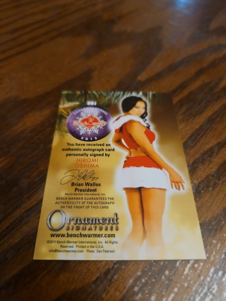 Benchwarmer 2015 Hiromi Oshima Happy Holidays Ornament Signatures Autograph Card Playboy Playmate Deliciously lithe, busty, and enticing brunette knockout Hiromi Oshima was born on January 6, 1980 in Tokyo, Japan. Oshima has a B.A. in communications and speaks fluent English, Spanish, and Japanese. She eventually moved to Miami Beach, Florida and first tried out for "Playboy" magazine scouts for the 50th Anniversary Playmate Hunt. After posing for a couple of newsstand special editions and being featured in a pictorial in the December, 2003 issue of the famous men's magazine, Hiromi was chosen to be the Playmate of the Month for June, 2004. Oshima has the distinction of being the first Japanese woman to be a Playmate. She went on to pose for a few more newsstand special editions and has appeared in several "Playboy" videos. Moreover, Hiromi was the January girl in the 2005 "Playmates at Play at the Playboy Mansion" swimsuit calendar. Outside of modeling, Oshima has also worked as a photo production coordinator, stylist, and producer for a number of magazine covers and photo shoots. She appeared as herself both in the comedy film "The House Bunny" and on the realty TV series "The Girls Next Door." Hiromi is featured in the music video for "Shake Ya Tailfeather" by Nelly, Sean "P. Diddy" Combs, and Murphy Lee. She has small roles in the movies "Batchelor Party 2: The Last Temptation" and "Race to Witch Mountain." Please, look at all the pictures. Please check out my other eBay accounts... https://www.ebay.com/usr/kimmyrael https://www.ebay.com/usr/matlac99 https://www.ebay.com/usr/lacr6837 https://www.ebay.com/usr/malac9440 https://www.ebay.com/usr/lacr_3567 https://www.ebay.com/usr/lacroki8 https://www.ebay.com/usr/lacroki9 Shipping only to the continental US unless you contact me first. Will combine shipping!!!