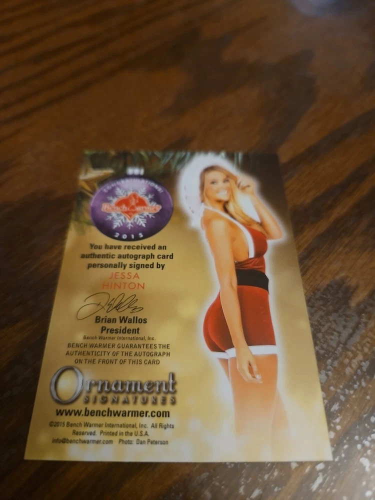 Benchwarmer 2015 Jessa Hinton Happy Holidays Ornament Signatures Autograph Card Playboy CyberGirl Please, look at all the pictures. Please check out my other eBay accounts... https://www.ebay.com/usr/kimmyrael https://www.ebay.com/usr/matlac99 https://www.ebay.com/usr/lacr6837 https://www.ebay.com/usr/malac9440 https://www.ebay.com/usr/lacr_3567 https://www.ebay.com/usr/lacroki8 https://www.ebay.com/usr/lacroki9 Shipping only to the continental US unless you contact me first. Will combine shipping!!!