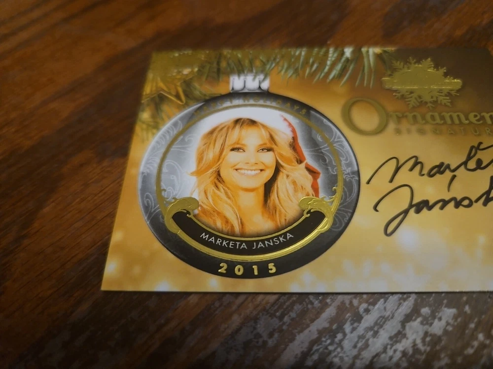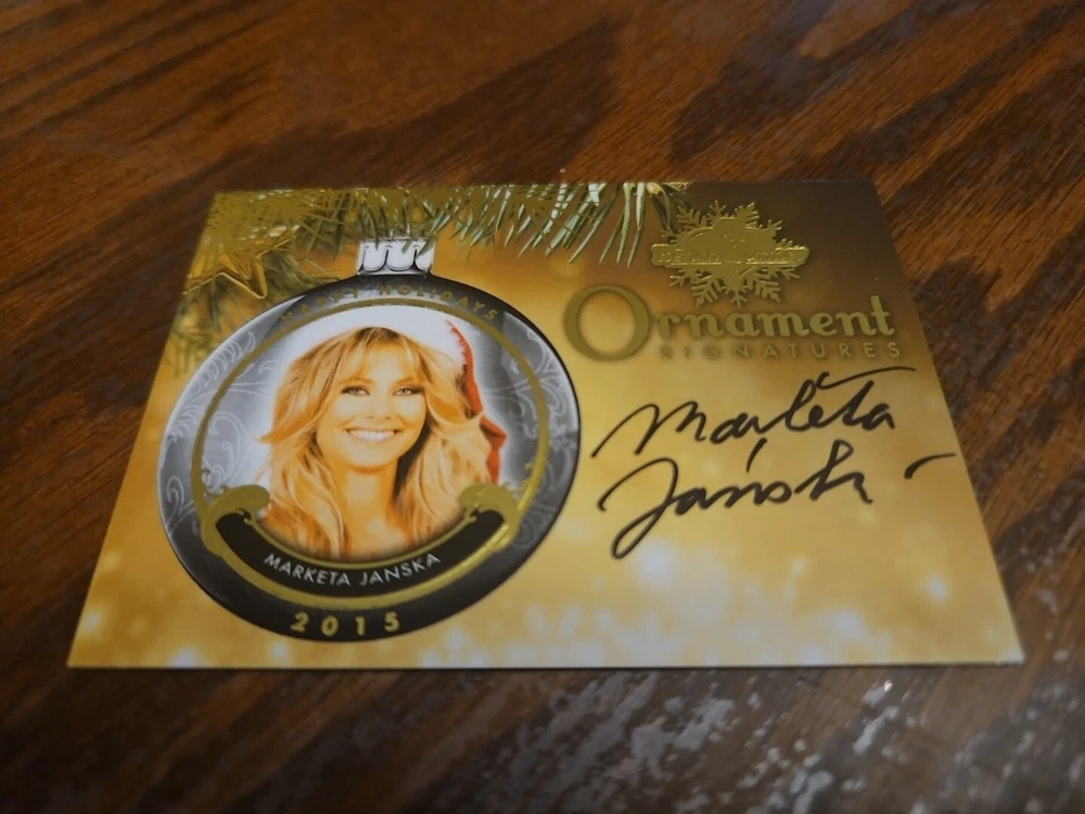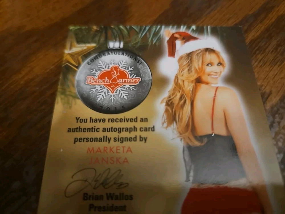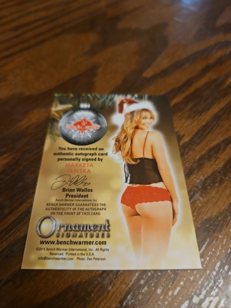 Benchwarmer 2015 Marketa Janska Happy Holidays Ornament Signatures Autograph Card Playboy Playmate Marketa Janska, born in the Czech Republic, is an actress, singer, and songwriter currently living in Los Angeles. She began her career as a model, living throughout Europe, and eventually moved to Los Angeles to pursue her true passions: music and theater. Marketa is a lyrical soprano, and has recorded one EP to date, entitled "How to Stay True". Her songs have been featured in independent films. She appears in various television commercials and films. She enjoys hiking and yoga, which are her two main sources of inspiration. P layboy Playmate of the Month July 2003. Please, look at all the pictures. Please check out my other eBay accounts... https://www.ebay.com/usr/kimmyrael https://www.ebay.com/usr/matlac99 https://www.ebay.com/usr/lacr6837 https://www.ebay.com/usr/malac9440 https://www.ebay.com/usr/lacr_3567 https://www.ebay.com/usr/lacroki8 https://www.ebay.com/usr/lacroki9 Shipping only to the continental US unless you contact me first. Will combine shipping!!!