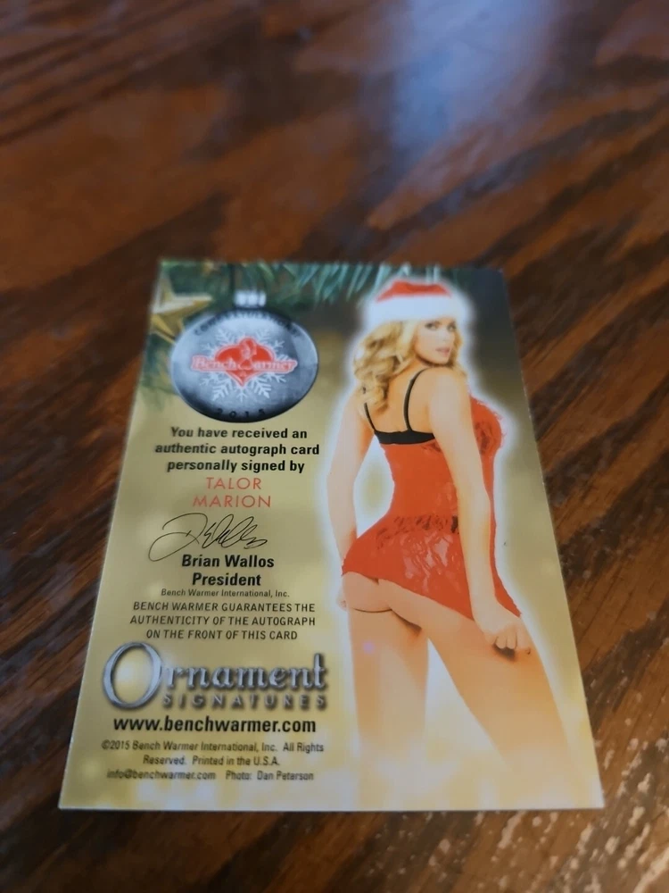 Benchwarmer 2015 Talor Marion Happy Holidays Ornament Signatures Autograph Card Playboy Playmate Please, look at all the pictures. Please check out my other eBay accounts... https://www.ebay.com/usr/kimmyrael https://www.ebay.com/usr/matlac99 https://www.ebay.com/usr/lacr6837 https://www.ebay.com/usr/malac9440 https://www.ebay.com/usr/lacr_3567 https://www.ebay.com/usr/lacroki8 https://www.ebay.com/usr/lacroki9 Shipping only to the continental US unless you contact me first. Will combine shipping!!!