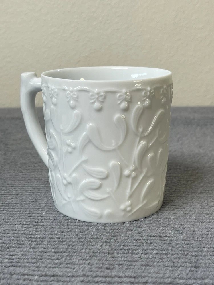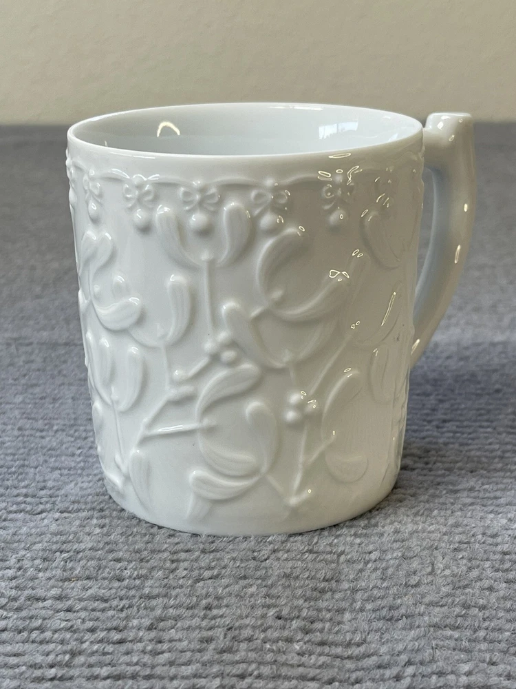 Bernardaud Mug - White Winter Fine Porcelain Discontinued piece Pre-owned - good condition. No chips, cracks or visible damage Height is 3 5/8