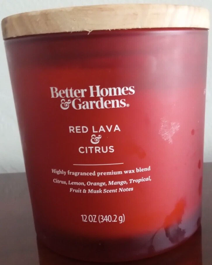 Enhance the ambiance of any room with this inviting Better Homes & Gardens 12 oz Red Lava & Citrus Scent 2-Wick Jar Candle Lid. The round-shaped, medium-sized candle jar is made of high-quality glass and features a vibrant red jar and cream-colored wax design. The candle is perfect for any room and occasion, emitting a refreshing citrus scent that creates a relaxing atmosphere. This traditional-style jar candle has two wicks with the jar measuring 4.25 inches in height and 3.5 inches in width. It is a perfect addition to your candle collection, providing a warm and inviting glow to your home.