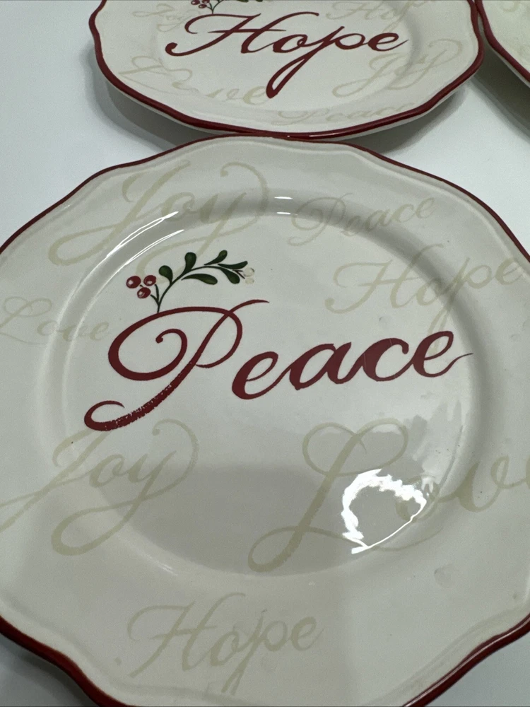 Enhance your holiday table setting with the Better Homes & Gardens Heritage Christmas Salad Plate set. This four-piece collection features a classic round shape and a diameter of 8.75 inches, perfect for presenting your favorite seasonal salads and desserts. Crafted from high-quality ceramic, each plate showcases a vibrant red color with a traditional garden-themed design, embodying the festive spirit of Christmas. The shiny finish adds a touch of elegance to the timeless style, making these plates a charming addition to any dinner or holiday gathering. Whether for your own collection or as a thoughtful gift for family and friends, this set is sure to bring a sense of love, peace, joy, and hope to your celebratory meals. Salad or Dessert Plate