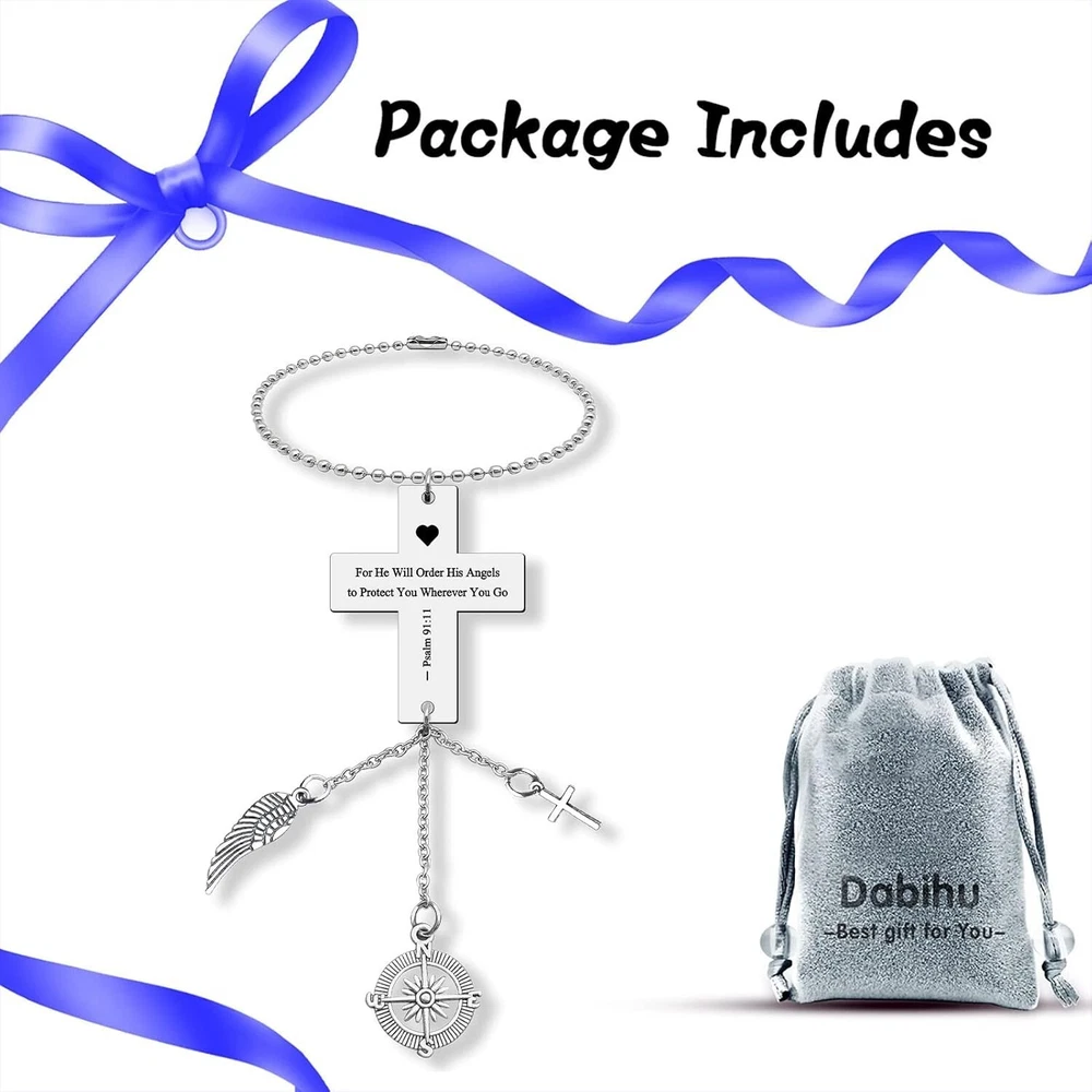 Bible Verse Hanging Ornaments Car Pendant for Home Vehicle Religious Faith Gifts for Women Men Gifts for Christian Scripture Thanksgiving Christmas Birthday Easter Prayer Gift Rearview Mirror Pendant Christian Gift for Women Men - “For he will order his angels to protect you wherever you go/Psalm 91:11”This faith Window Hanging Ornament can give you encouragement and confidence whenever you lose faith, because God is our refuge and gives us strength to help us get rid of trouble, so we will not fear at any time. Religious Bible Verse Gifts - Proudly celebrate your faith by the pendant with bible verse, perfect for anniversary, wedding, Easter, going away, going to catholic school, college, Christmas,birthday,conformation gifts or just because gifts. Inspirational Hanging Ornament - Hanging this religious mirror Ornament for you or your family member car's rearview mirror.No matter where you are or what you do, god will always be with you and give you strengthen. Stainless Steel Car Interior Rearview Mirror Pendant - High Quality Stainless Steel, no distortion, no damp, no rust; Bright, shiny, won’t change color or get dark.The pendant size:50mm*40mm(1.97"*1.57”).You can use them to decorate your car interior, house or room. Free Nice Velvet Bag - The inspirational christian Car Rear View Mirror Charm comes with a velvet pouch,ready for gifting.A reminder of strength is important at the difficult time, reminder that the Lord is with him, stay the course and keep faith.