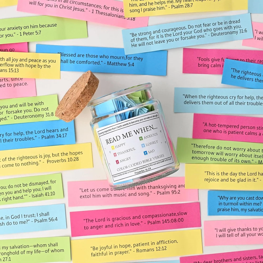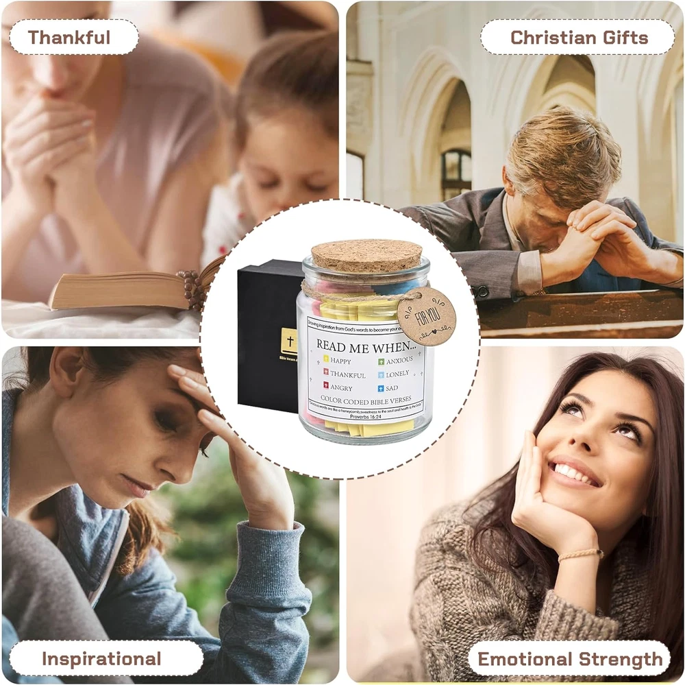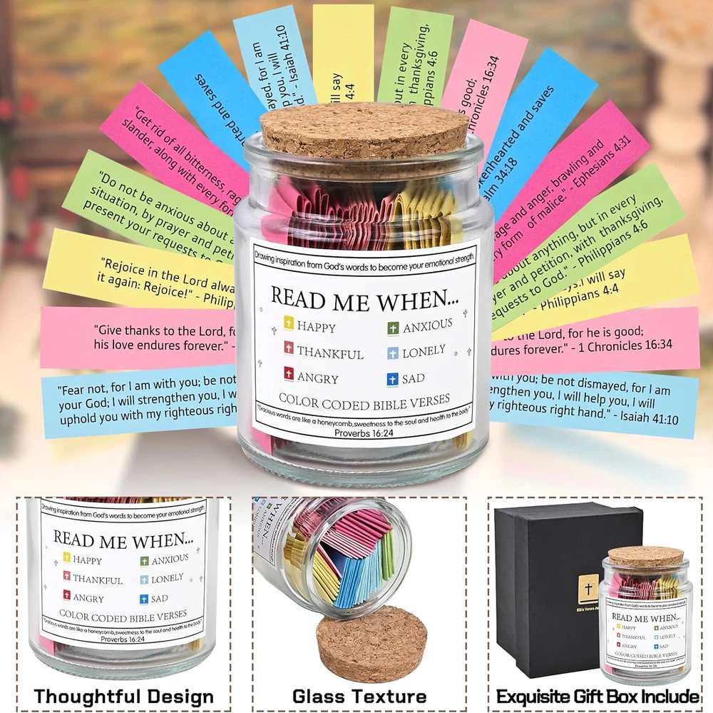 Bible Verses In A Jar Read Me When Bible Verses Jar For Emotions And Feelings ✅ Bible Verses in a Jar, Read Me When Bible Verses Jar for Emotions and Feelings,Glass the Hope Jar Bible Verses with Colored Bible Verse,Christian Gifts Church Biblical Faith Based Gift Product Description: The Bible Verses in a Jar is a beautiful Christian gift designed to uplift and encourage. Each jar contains a collection of carefully selected Bible verses, each printed on colorful paper strips. This inspirational jar is perfect for moments of reflection, offering comfort and hope when needed most. Whether you're looking for strength, peace, or guidance, this jar provides a daily reminder of faith and divine promises. Features: Inspirational Bible Verses : The jar contains a collection of Bible verses, each offering encouragement, hope, and wisdom to help guide you through life's challenges and celebrations. Colorful and Thoughtful Design : Each verse is printed on a vibrant, colorful paper strip, making the experience of reading them visually appealing and uplifting. Perfect for Any Occasion : This jar makes a meaningful gift for any Christian occasion, including birthdays, anniversaries, housewarmings, or as a thoughtful token of support during difficult times. Compact and Convenient : The glass jar design is both elegant and practical, allowing you to keep it on your desk, bedside table, or anywhere you need a reminder of God's love and strength. Encouraging and Comforting : Whether you're feeling down or simply seeking spiritual reflection, pulling a verse from the jar offers a moment of connection to your faith and spiritual healing. A Great Christian Gift : Ideal for friends, family, church members, or anyone seeking to strengthen their spiritual life, making it an excellent gift for pastors, youth groups, or prayer partners. Handcrafted Quality : Each jar is carefully put together with attention to detail, ensuring a thoughtful and personal gift that reflects your love and care. Daily Affirmation : Perfect for daily use, the jar serves as a reminder to trust in God’s plan, with each verse offering affirmation, encouragement, and peace to start or end your day. Unit Count 1.0 Count Capacity 2 Pounds Number of Items 1 Closure Type Twist Lug Pattern Solid Material Glass Shape Cylindrical Package Type sturdy cardboard box Item Dimensions W x H 2.55"W x 2.55"H Size 1 Pcs Shipping Fast shipping is very important for us. Our standard USA shipping service is FREE. Your order will be shipped within 1-2 business days upon full payment received. Your order will be delivered within 1-3 business days after the handling time. We only ship to the confirmed address. We reserve the right to cancel any order for any reason at any time. We are not responsible for undeliverable addresses. Returns and payment We offer a 30 days return policy from checkout winning date. FeedBack Your feedback very important to us, after you get your package and you are satisfied with our service please leave us positive feedback If you have any problem with your order / any questions please before leave any type of feedback For any questions, using eBay contact system Please visit our eBay store to check out other items for sale! Thank you for shopping at our store.