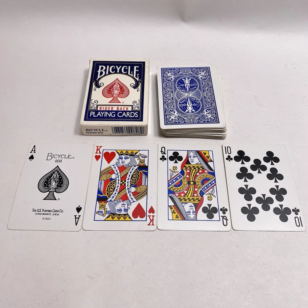Theme:rider backBrand:Bicyclegtin13:073854008089Country/Region of Manufacture:United StatesUPC:073854008089Seller Notes:“Complete 52 card deck with no jokers. Photos show the actual items you will receive.”Age:Modern (1970-Now)Type:808 Poker Blue Pack