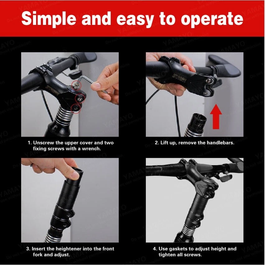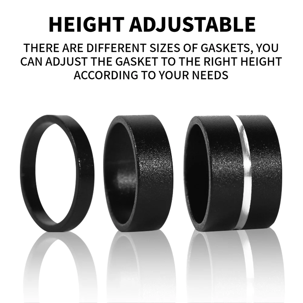 Specification: Material:Aluminum Maximum Height Extension:2.76'',4.53”,7.09”,8.27” Fit for Steerer Tube: 1 1/8" Length:70/115/180/210mm Weight:105/168/260/301g Feature: [High Strength Material]:Made of high-quality aluminum alloy, with high hardness and corrosion resistance.Non-deformation, and durable for long time use. [Adjustable Height]:Stem riser can freely adjust the gasket to fit your own height, 2 for 4.53” stem riser, 6 for 7.09" stem riser, 7 for 8.27" stem riser. This bike riser could be installed won the front handlebar, and there are designed with 2/6/7 pads, you can adjust the height with them, enough to meet your different kinds of needs. Bicycle Fork Stem Extender Handlebar Riser Extension Adapter Mountain Bike MTB Specification: Material:Aluminum Maximum Height Extension:2.76'',4.53”,7.09”,8.27” Fit for Steerer Tube: 1 1/8" Length:70/115/180/210mm Weight:105/168/260/301g Feature: [High Strength Material]:Made of high-quality aluminum alloy, with high hardness and corrosion resistance.Non-deformation, and durable for long time use. [Adjustable Height]:Stem riser can freely adjust the gasket to fit your own height, 2 for 4.53” stem riser, 6 for 7.09" stem riser, 7 for 8.27" stem riser. This bike riser could be installed won the front handlebar, and there are designed with 2/6/7 pads, you can adjust the height with them, enough to meet your different kinds of needs. Easy to install, you just need to use the screw to fix the riser, and you can use it without worries because it is not easy to fall off or loose. The bike riser is designed with small size and lightweight, will not increase the weight of your mountain bike, will not influence your riding. Payment Delivery details Terms of sales About us Contact us Payment • Payment methods accepted: PayPal/ Visa/ Mastercard/ Goole Pay/ American Express Delivery details • We'll dispatch the item for you in 1 business day after receiving payment. • We will ship to confirmed order address, your order address must match your shipping address. • All of your order will be checked carefully before pack. • We do not responsible for any custom duty or import tax. Terms of sales • We provide "One year" quality assurance date. if the item is defective within 1 year due to quality issue, we will repair or replace it for free(according the products). please notice, warranty does not include accident, human fault or improper use. Return and Refund Policy • Please contact us within 3 working days and show us as much proofs,photos, etc If what you receive come with a broken or defective quality. • Buyers are responsible for the shipping cost which cause by returns or exchange. • Refund will be granted after we receive the returned items in original condition. • New items or Repaired items will be shipped to you as soon as we receive the items for replacement. About us • We maintain high standards of excellence and strive for 100% customer satisfaction. Positive feedback is very important to us. Please kindly contact us immediately before you leave us Neutral or Negative feedback, we will do our best to keep you satisfied. Contact us • Our working time: BST +8 Monday to Saturday 8:30-18:00. We will reply you within 1 business day.