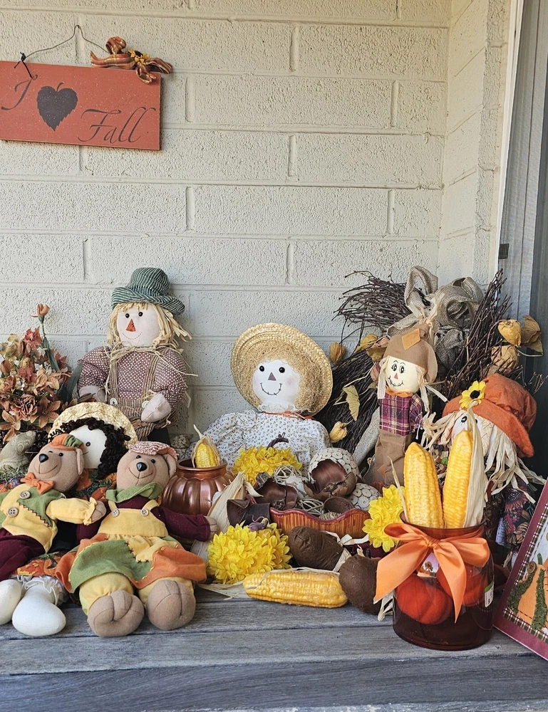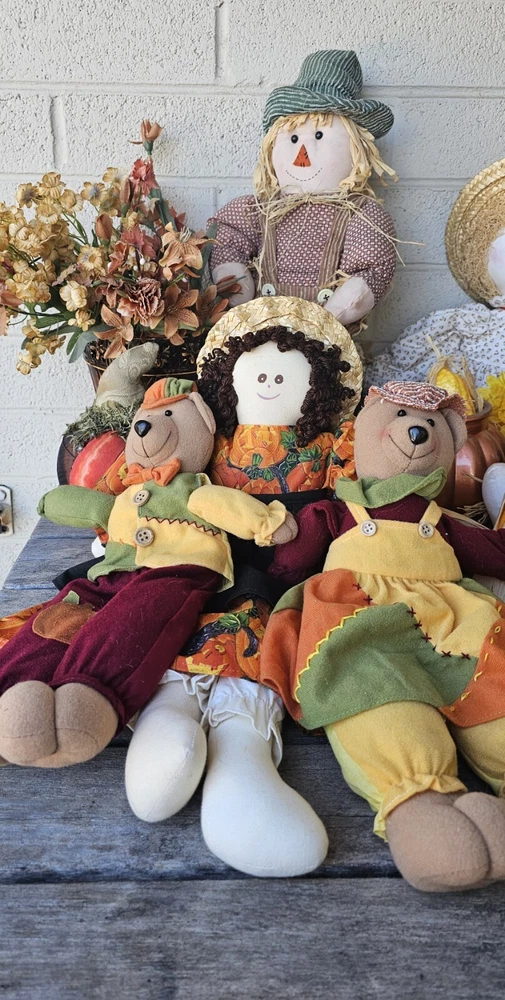 Lot of plushes, wreath, wall hangers, flowers, fake corn cobs, & so much more! Selling only as a lot. The box is crammed full but no worries...nothing in there is breakable. Glass items are not included.