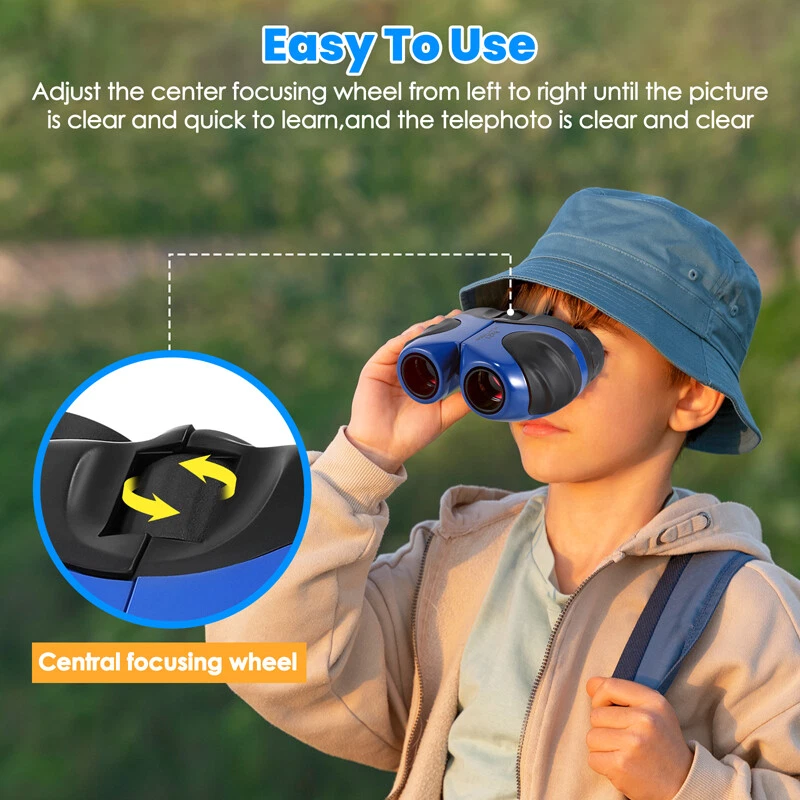 Kids Children's Pocket Mini Binoculars 8x21 Color Adjustable Focus Telescope Feature: -- Safe and Reliable: There is soft rubber around the eyepiece to protect children's eyes, while there is an extra coating around the eyepiece to protect the lens when dropped. -- Advanced Design: Non-slip scratches, the grip is ergonomically designed to fit children's hands, easy to focus, and can see a clear view. -- HD Field of View: With 8x magnification, wide field of view, the binoculars can be adjusted, perfect for bird watching, learning, hunting, theater, hiking. -- Shockproof Function: The durable telescope is coated with shock-absorbing rubber to withstand drops on the ground, and the shockproof rubber can protect the telescope from damage. Specification: Color: Blue Material: rubber + plastic Field of view: 126m/1000m Magnification: 8 times Diameter of objective: 21mm Diameter of eyepiece : 12mm Focusing type: center focusing Product size: 11*8.5*7.5cm/4*3.3*3inch Package includes: 1x Telescope 1x Lanyard 1x Cleaning Cloth 1x Instruction Manual 1x Packaging Bag 1x Packing Box Payment Delivery details Terms of sales About us Contact us Payment Payments: Paypal, Google Pay, Visa, Master Card, Amerian Express, Discover. Delivery details All items are shipped from US warehouse located at NJ . We ship to your eBay or Paypal address. Please make sure your eBay or Paypal address is correct before you pay. Terms of sales Free return About us Pls contact our customer service firstly if have any problems , we will help to solve the issue, and could offer free return service for full refund or free replacement after confirming. You can buy from us with confidence Contact us If have any problems, please feel free to contact us.