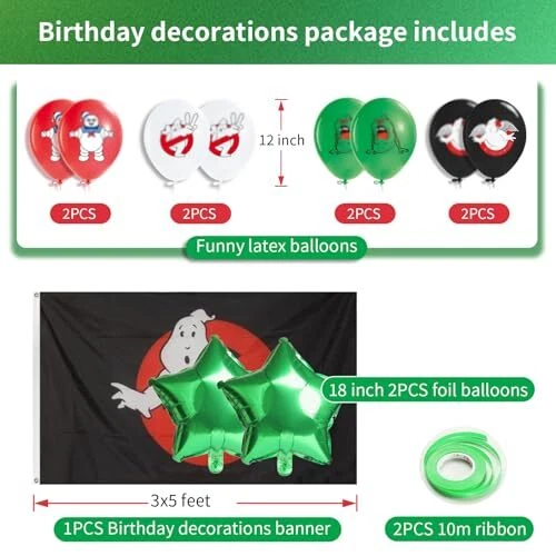 Return Policy Fast Delivery Trusted seller Birthday Decorations Birthday Balloons Party Decorations,Happy Birthday Banner Backdrop with 10 Balloons and 2 Ribbons,Flag for Room Decor Wall Decor Bedroom Decor Halloween Decorations (01Banner Set) Product Description Party decorations set includes: 1pcs birthday banner, 2pcs 18" green foil balloons,2 roll of ribbons and 8pcs 12" printing balloons ( includes :2 white balloons, 2 black balloons, 2 red balloons, 2 green balloons) to bring you a fast, special and fun party feast Versatile Decoration:Eye-catching black birthday banner and funny balloons assorted colors are suitable for happy birthday decorations Whether it’s a birthday party for men, women, boys or girls, themed parties, cosplay events, halloween decorations, christmas decorations or as home decor Reusable ghos*tbusters flag banner 3x5 feet, light weight and good size, wide application. Perfet for indoor and outdoor any party decorations, bedroom decor. Or hung it up on livingroom wall or hung on the garage wall or wver you want. Also can use for Business Store, Office, Bars, Retail Salon,or Shop decorations High quality balloons: The balloons print interesting patterns and made of high quality latex, which are durable and non-toxic. Latex balloons can support air and helium. Please do not inflate the balloon more than 90%, or rub against overheated and sharp objects to avoid sudden popping. NOTES: T may be some latex odor when the balloons are taken out, You can dry it in a shaded and ventilated place, and do not place it in direct sunlight Flag and balloons Compatible with ghostbusters party decorations package help you fast make a special parties fast. You can use them alone or with other party supplies, use them with other balloons to make balloon garland and balloon arch, and black birthday backdrop to create will give you a distinctive party vision and good memories Shipping Returns Payment Shipping Shipping is FREE to all addresses other than APO/PO boxes in the lower 48 states. All our stock ships from US-based warehouses. Shipped via USPS or UPS (depending on location and package weight) Unless stated otherwise, all orders will ship within 24-72 hours of your payment being processed. Check our feedback to see the great reviews of FAST shipping we offer. Returns Seller does not accept returns Payment We currently accept payment via eBay managed payments only. Once payment is cleared, we will dispatch your shipment within 1-3 business days. Please refer to the "Shipping" tab for more information regarding shipping speed to your destination.