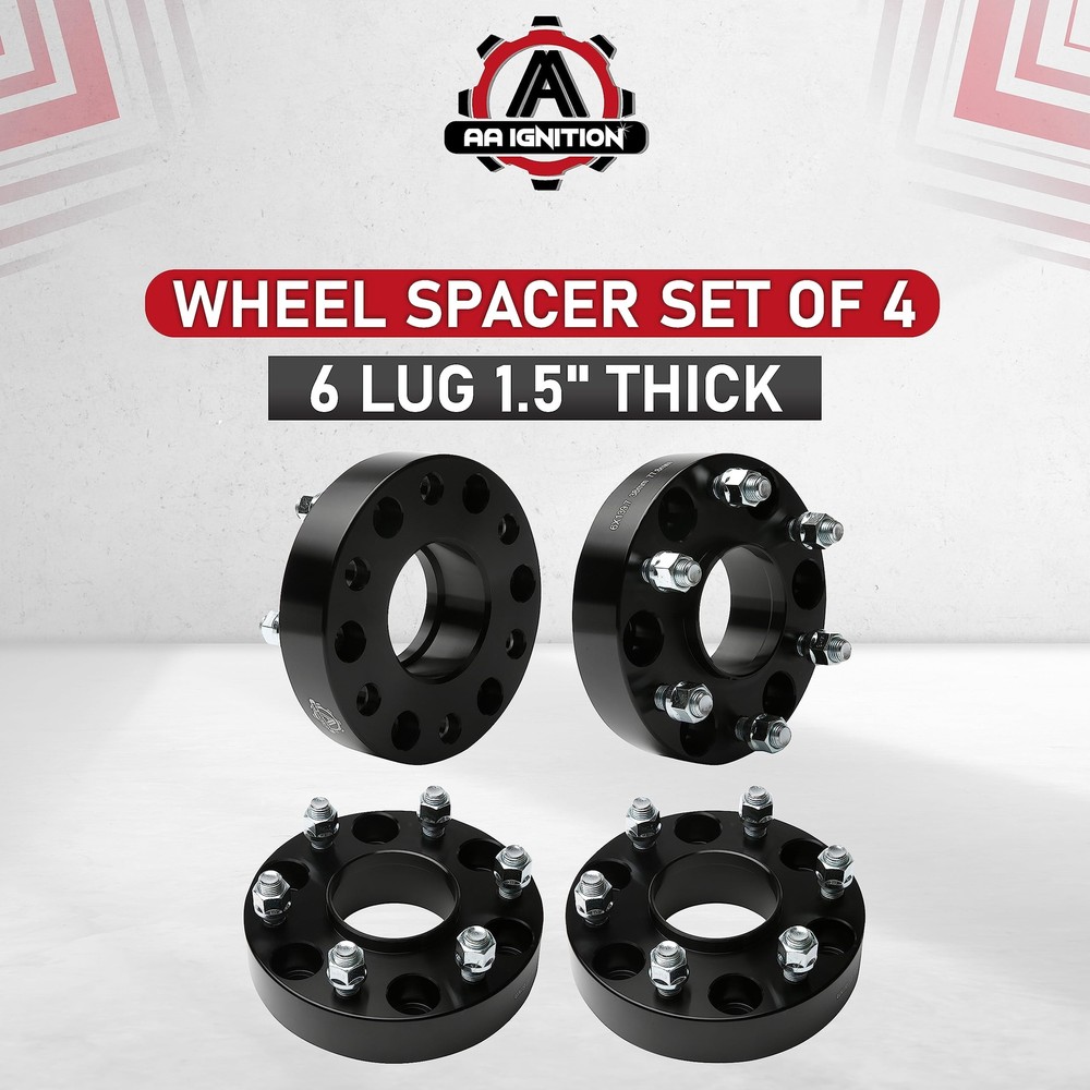 AA Ignition Wheel Spacer Set of 4 Black - 6 Lug 1.5 inches 38mm Real Forged Hub Centric 1.5" 6x5.5 - Compatible with Dodge Ram 1500 2019, 2020, 2021, 2022 6x139.7mm, 77.8mm Bore, M14x1.5 Studs Product Details Manufacturer: AA Ignition Brand: AA Ignition Model: GWA790 Item Weight: 19.23 pounds Country of Origin: China Exterior: Machined Manufacturer Part Number: GWA790AA Rim Diameter: 1.5 Inches Rim Width: 1.5 Inches Bolt Pattern (Number of Holes): 6 Bolt Pattern (Pitch Circle Diameter): 139.7 Millimeters Backspace: 1.5 Inches Date First Available: July 17, 2023 Compatible with Dodge Ram 1500 Trucks - 2019 Ram 1500 | 2020 Ram 1500 | 2021 Ram 1500 | 2022 Ram 1500. Easy and straight forward installation with no special tools required. Will not fit Ram 1500 models before 2019. Only fits 6 stud models. Complete Kit - This is a complete kit from AA Ignition that includes all the necessary bolts and lug nuts for a complete installation. Wheel spacers extend the wheels outward the vehicle giving it a more aggressive look, which also allows for large brake caliper installations or lift/lowering kits. The wheel spacers are 1.5 inch thick with 77.8mm center bore diameter, 14 x 1.5 threaded studs and a 6x139.7mm bolt pattern. OEM Fit, Quality, Finish - CNC machined black colored anodized wheel spacer provides additional resistance to corrosion and with 10.9 grade studs and heat treated lug nuts, you can rest assured you are getting the highest quality of wheel spacers that is tough, stable and safe. Lifetime Warranty - This 1.5 inch wheel spacers manufactured by AA Ignition comes complete with a lifetime warranty. If the part ever break or fail on your 19-22 Ram 1500 or years 19, 20, 21, 22 simply contact us for a replacement and take advantage of our Lifetime Warranty.