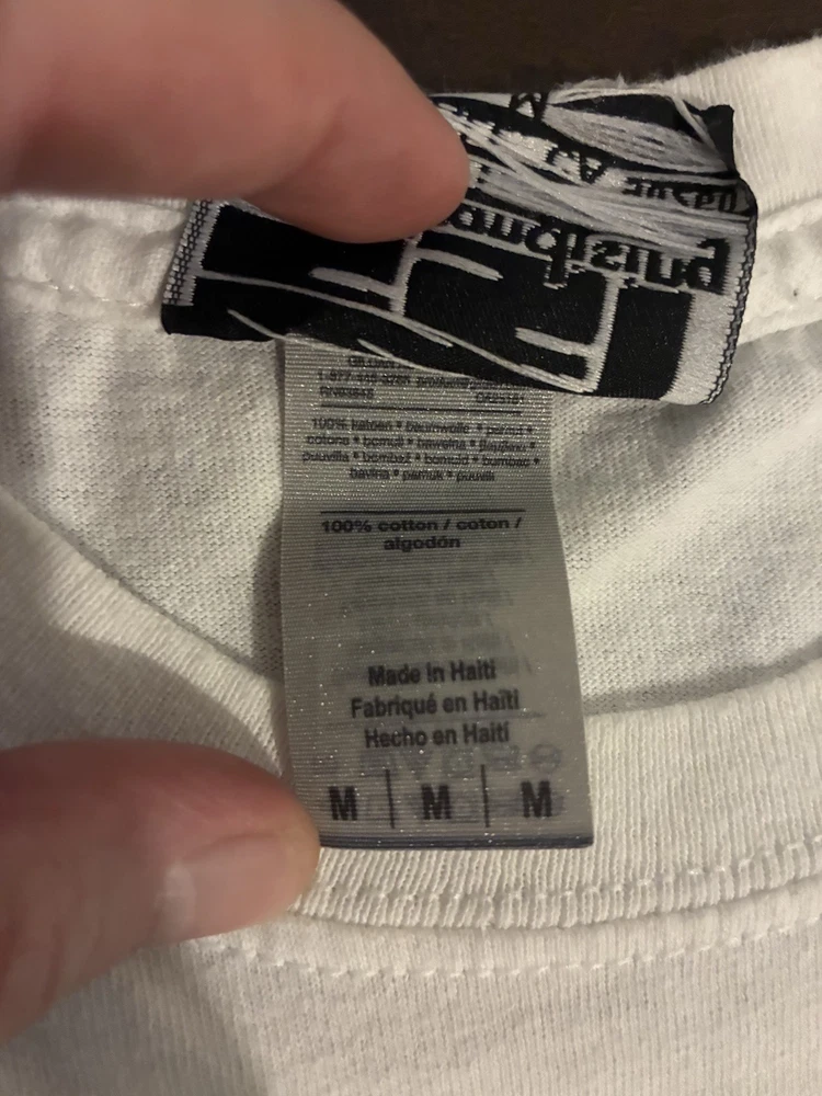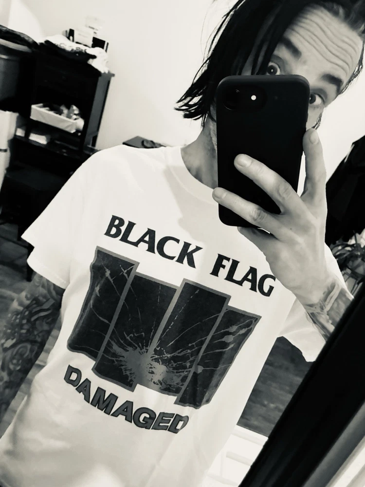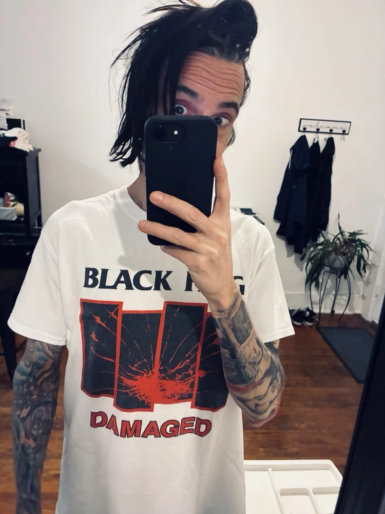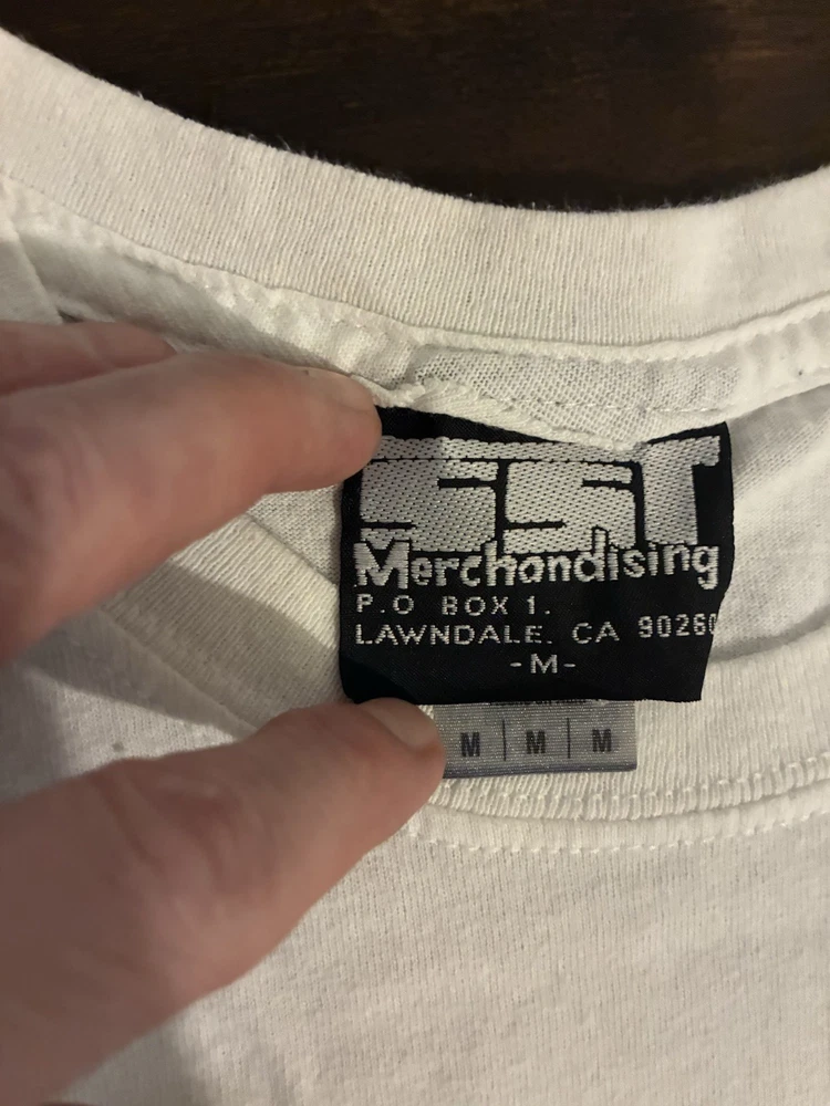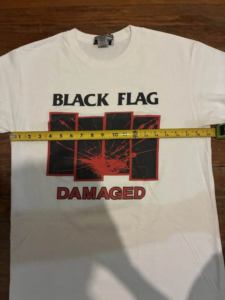 Everybody calm down; it's "legit." As you may have notitced, many sellers here on eBay have given up on listing Black Flag merch, since we all know that the legal team (probably just one dude) at SST Records routinely trawls the platform looking for items to "report." Dude (and you know it's a dude) complains to eBay that such items are in violation of copyright law. Dude has a wide berth: any item can get "flagged" for any reason, and eBay summarily caves and cancels the item, forbidding us from listing it ever again (supposedly). If this happens more than twice, they put us in "seller jail," whereby we're forbidden to list at all for three full days. But that's not the annoying part. The annoying part is that we have no recourse. Somewhere in the "canned" email we receive from eBay regarding these events, we're told that we can appeal to SST for a hearing of some sort, but that's totally useless, since no one at SST would ever respond to such an inquiry. Why would they? Anyway, I've decided to list a series of these shirts at my own peril. Each item will bear the "SST" logo and stamp, insuring--supposedly--that it's an actual piece of merch from their product line; but if I'm listing it here, it won't be some boxy new piece of crap that looks and feels like "superstore" merch. So this is a real dope one: the coveted promo tee for the great Everything Went Black compilation (mid to late 90s, judging by the old school tag), as as you can see, a great fit, bod-flattering and slim with stubby sleeves for an extra punked-out look. And again, should anyone from SST or eBay wish to question the "authenticity" of this or any other item for sale at slim_punk_vintage, hit me up: I'd love to hear about it. Have a good one.