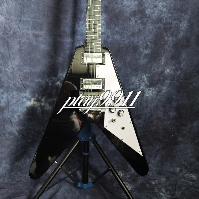Black Flying V 70s HH Pickups Electric Guitar Mahogany Body White Pick Guard Welcome to my store. My team has been making musical instruments for many years. I will try my best to provide the best item for you! Goods condition Body:Mahogany Neck: Mahogany Fingerboard: Black Nut width: 43 mm Scale Length:24.7 inch Joint:Bolt on Hardware:Chrome Pickups:2 Humbuckers Pickup Switch:3-ways Electronic:1 Volume 2 Tone Bridge:T-O-M ABOUT THE PICTURES The pictures are taken in our factories by ourselves. Each guitar is different from others because of the light in room or some other reasons .So there are maybe some differences between the pictures and the guitar you get. Every guitar cannot be the same in 100%, the pictures of the guitar that you see is just one of them. If you want some details about the guitar, please contact me. OUR GUARANT EE We test every guitar (such as buzzing, sound test, workmanship) is in good condition before it is shipped out. When you receive the guitar, if you meet some problems like readjustment the strings or you are not happy with our guitar, please let me know immediately and we will try our best to meet you satisfaction. CUSTOMIZED CEN TER Head stocks are not pictured per our policy. Custom Head stocks are available upon request from our factory custom shop. Please contact us for details. All customized products are non-returnable. SHIPPIN G Once payment has been confirmed, your item will be shipped within 3 or 30 business working days. That depends on specific goods deliver ways.The speed also base on Custom Clearance Speed, which we can't control .So if you want this for your gig next weekend it probably wont make it on time, so please keep that in mind when ordering. PACKIN G We use the carton which is designed for the International transport to package the products you ordered. And we can guarantee the items will not be damaged in the way of transportation. RETURN POL ICY If the item you received is broken or defective, please contact me immediately and return it within 3 days after you received it with the original or approved packaging. After we received it, we will give you a Full-Refund or Exchange. Buyers are responsible for return shopping costs. If you want to replace it, we will send a new one to you and then forward a shipping label. For missing or replacement parts(from the original order), we will ship them to you. Please read the RETURN POLICY before you order it! FEEDB ACK Thank you for your great comments and feedback. (a) When you are satisfied with your purchase, we sincerely hope that you can give us a positive feedback. Again, we will give you a positive feedback. (b) If you are dissatisfied with your purchase, please contact us submitting a neutral or negative feedback. We will respond to you in 24 hours and work with you until you are satisfied.