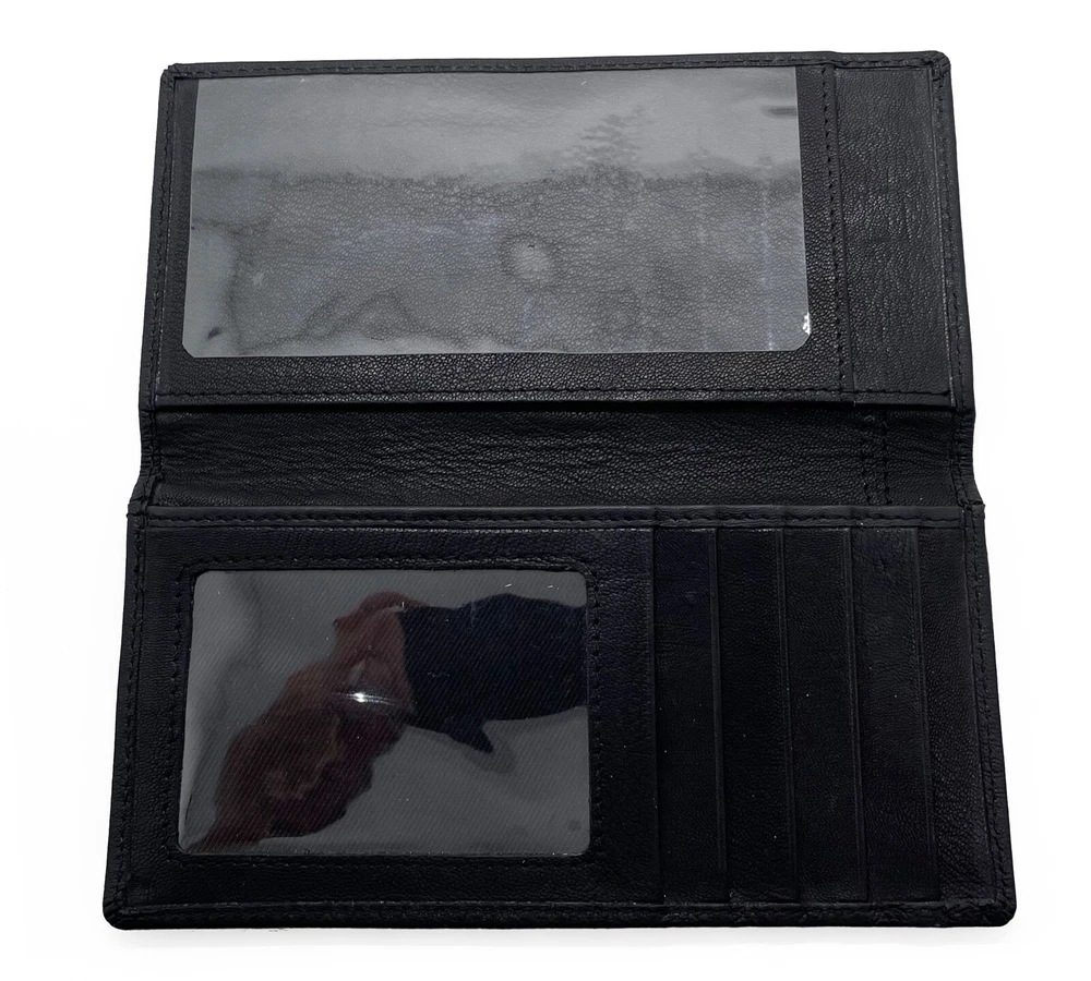 Black Genuine Cow Leather Men Lady Checkbook Cover Organizer Premium Wallet Features: · Condition: New · billfold pockets, holds checks, credit card slots, ID window, photo insert and pocket for receipts or bills...(see picture for complete details) · Size: *3.75" x 6.75" estimated LP 550 Pictures and spec are for reference only and the leather goods is the only thing that we are selling. Natural product may result in size variation due to temperature and weather. Thank you for your understanding. Track Page Views With Auctiva's FREE Counter 100% Satisfaction Guaranteed! --- " International buyers – please note : Import duties, taxes, and charges aren't included in the item price or postage cost. These charges are the buyer's responsibility. "Please check with your country's customs office to determine what these additional costs will be prior to bidding or buying." Payment Shipping Returns PayPal is the preferred payment method. We ship every day Monday - Friday. We hope you will love your purchase, however if you need to return it, we have a 30 day return policy. Special Offers Special Bulk Purchase Discounts! Shop Now Special Discounts! Shop today! Special Bulk Purchase Discounts! Shop Now Powerful eBay listing templates by 3Dsellers About Us: Our leather product is made from the finest leather that will look better and better as they age. It will develop an extraordinary countenance as it crosses through life with you. Disclaimers: Pictures and spec are for reference only with the best effort that we can provide. Natural products may result in size and color variation due to temperature and weather. Minor scratches and pigment are normal for leather goods. We are selling the leather goods only; no other props display will be included. International buyers: Import duties, taxes, and charges aren't included in the item price or postage cost. These charges are the buyer's responsibility. Please check with your country's customs office to determine what these additional costs will be before bidding or buying.