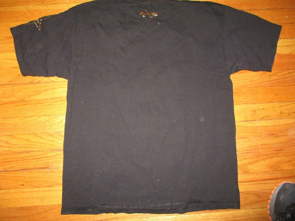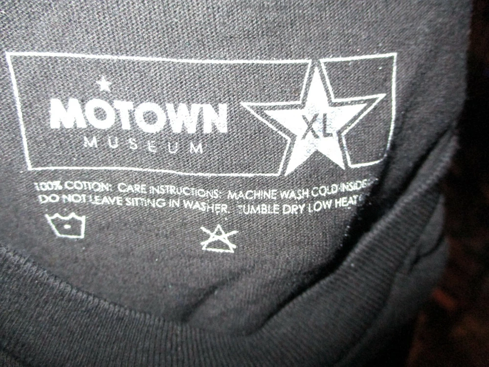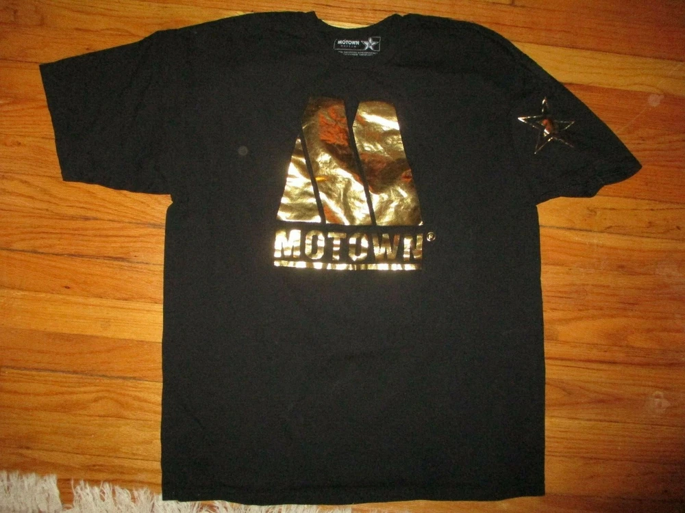 Gently worn black Motown 50th Anniversary gold logo t shirt. Shirt is 100% cotton. Size is XL. 23 1/2 inches armpit to armpit and 31 inches from collar to hem. Shipping $5 in USA, $12 to Canada, $\18 to Europe and S. America & $18 to Australia, Japan, Pacific Rim. Multiple purchase shipping discount if shipped at one time. Payment must be received w/in 3 days of auctions end.