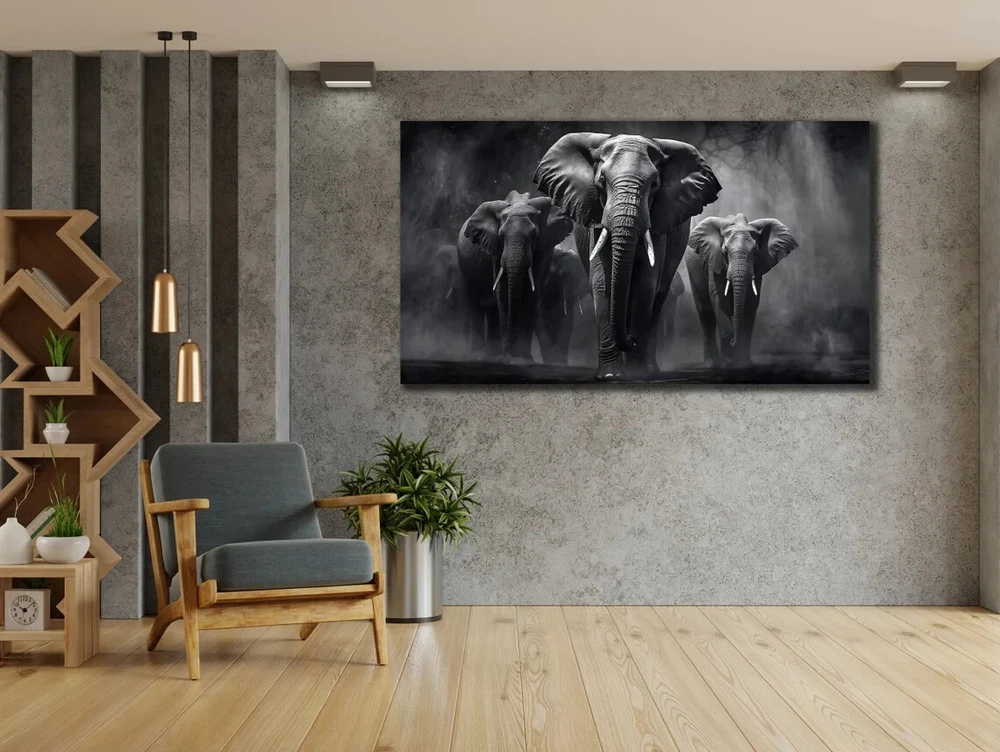Black & White Elephant Family Abstract Unframed Canvas Print Australian Wall Art