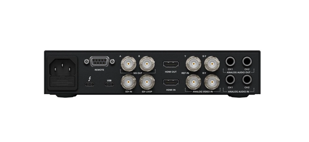 Blackmagic's UltraStudio 4K Mini was designed as a breakout box linking your computer with external components to allow video capture, playback, and streaming. Portable and lightweight, this unit is loaded with high-quality features like 12G-SDI, HDMI 2.0 and capture capabilities in all formats up to 4K DCI at 60p, and 12‑bit high dynamic range capture in all formats up to 4K DCI at 30p. The 4K Mini is big on connections with virtually all needed I/O covered, including SDI, HDMI, analog audio, and component input. Plus, there's a 1/4" headphone output and an XLR microphone input on the front panel for convenience. The UltraStudio 4K Mini front panel boasts push-button controls, an LCD screen for monitoring and setup, and an SD card reader slot to facilitate instant editing directly from your camera media. An obvious choice for on-location use due to its portability and feature set, the 4K Mini is also at home in a post-production or editing suite, and its compatibility with Mac, Windows and Linux software make it your one box solution to get the job done. This is a Restock item that has had its box opened or has been repackaged. It may have minor cosmetic flaws and may have been sold to a customer and returned. Please contact your Sales Pro for more information on this and other products. Blackmagic Design BDLKULSDMINI4K [Restock Item] Applications: On location camera capture On location color grading Post-production / editing suite Archiving Live streaming Blackmagic Design BDLKULSDMINI4K [Restock Item] Includes: UltraStudio 4K Mini SD card with software and manual Software Included DaVinci Resolve Media Express Disk Speed Test LiveKey Blackmagic Desktop Video Utility on Mac OS and Windows Blackmagic driver on Mac OS and Windows Media Express Blackmagic Desktop Video Utility Blackmagic driver on Linux Blackmagic Design BDLKULSDMINI4K [Restock Item] Specifications: Connections SDI Video Inputs, 1 SDI Video Outputs 2 x program out, 1 x loop out. SDI Rates 270Mb, 1.5G, 3G, 6G, 12G. Analog Video Inputs Component YUV or Composite NTSC/PAL. Component is switchable between SD and HD. Analog Audio Inputs 2 channels of professional balanced analog audio with 1/4 inch Jack connectors. Analog Audio Outputs 2 channels of professional balanced analog audio with 1/4 inch Jack connectors. SDI Audio Inputs 16 Channels embedded in SD/HD/2K/UHD/4K. SDI Audio Outputs 16 Channels embedded in SD/HD/2K/UHD/4K. HDMI 2.0b Video Inputs, 1 HDMI 2.0b Video Outputs, 1 HDMI Audio Inputs 8 Channels embedded in SD/HD/UHD/4K. HDMI Audio Outputs 8 Channels embedded in SD/HD/UHD/4K. Mic Input 1 x XLR microphone input. 48V Phantom Power switchable via software control. Sync Input Tri-Sync or Black Burst. Device Control Sony™ compatible RS-422 deck control port. Serial ports TxRx direction reversible under software control. USB 1 x USB-C 3.1 Gen 1 (up to 5 Gb/s). SD Card Reader UHS-I and UHS-II compatible. Computer Interface Thunderbolt™ 3 (Mac OS, Windows and Linux) with 45W host charging capability. Supported Codecs: AVC-Intra, AVCHD, Canon XF MPEG2, Digital SLR, DV-NTSC, DV-PAL, DVCPRO50, DVCPROHD, DPX, HDV, HEVC, XDCAM EX, XDCAM HD, XDCAM HD422, DNxHR & DNxHD, Apple ProRes 4444, Apple ProRes 422 HQ, Apple ProRes 422, Apple ProRes LT, Apple ProRes 422 Proxy, Uncompressed 8-bit 4:2:2, Uncompressed 10-bit 4:2:2, Uncompressed 10-bit 4:4:4 Supported Codecs: AVC-Intra, AVCHD, Canon XF MPEG2, Digital SLR, DV-NTSC, DV-PAL, DVCPRO50, DVCPROHD, DPX, HDV, HEVC, XDCAM EX, XDCAM HD, XDCAM HD422, DNxHR & DNxHD, Apple ProRes 4444, Apple ProRes 422 HQ, Apple ProRes 422, Apple ProRes LT, Apple ProRes 422 Proxy, Uncompressed 8-bit 4:2:2, Uncompressed 10-bit 4:2:2, Uncompressed 10-bit 4:4:4