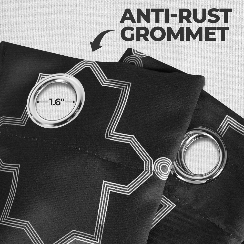 Sleep in utmost comfort and with the exquisite Trellis Blackout Curtains. This lovely panel duo reduces up to 70% of sunlight and UV rays and features a triple-weave for a thicker, more decadent curtain. Crafted from 100% polyester with rod pockets or a stainless grommet header (depending on size), these curtains are durable and modern in design. Available in various colors and sizes, the gorgeous lattice pattern has a versatile matte finish that adds timeless beauty to your decor. DURABLE AND PRIVACY-ENHANCING: Crafted from 100% polyester, our blackout curtains block 70-80% of sunlight and UV rays; the thick triple-weave fabric maximizes privacy, making them perfect for bedrooms or living rooms; Set Includes: (2) Curtain Panels ENERGY SMART: The thermal insulating fabric balances room temperature and helps protect your home from summer heat and winter chill; impress your guests while staying comfortable, and protect your furniture with these prestigious and versatile curtains VERSATILE HEADER: Drape these curtains with style and convenience; depending on size, the curtains feature different headers: 26" width curtains come with a rod pocket header, while 42" and 52" width curtains feature stainless steel grommet headers EASY TO MAINTAIN: For luxurious results, these polyester curtain panels are machine washable; wash cold on a gentle cycle and tumble dry low; do not bleach; press with a warm iron when needed; always care label instructions for best results EXCELLENT GIFT: Our curtain designs match a variety of styles and make great gifts for friends and family; perfect for weddings, housewarmings, or any holiday; instantly update any room in your home, dorm, or apartment with this curtain panel set