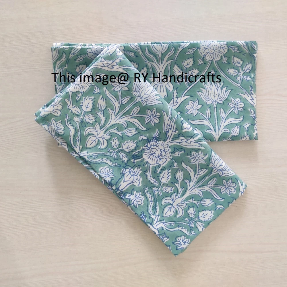 cotton napkins will be a great addition to any dining table as cotton is timeless and natural. Simple cotton napkins are made form 100% stone washed cotton fabric. cotton napkins will look great on your dining or kitchen table all year round on special occasions, parties, holidays and also in everyday use. These durable yet elegant napkins will go great with any meal and occasion. cotton napkins available in various colors Dress up your dining table with these block-printed napkins from India. Mix and match or make a bold statement with one print—this beautifully crafted cotton tableware is perfect for adding a touch of color to your table This napkin set is crafted from organic cotton and printed by hand using wooden blocks in Jaipur, India. ** Customization Can Also Be Done*** * Beautiful Indian Hand Block Printed 100% Brand New Cotton Napkins * Simple and elegant design is one of essential item for your dining table, Protect your table from scratches and stains * Also Suit for restaurant, home kitchen, hotel, coffee shop, etc. Please Contact with us if have any questions! NOTE: There may be a slight difference in color of actual piece due to screen resolution **Note:- "International buyers are responsible for their countries duties and taxes"