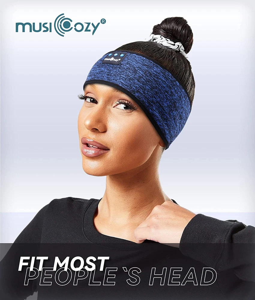 BLUETOOTH SLEEP HEADPHONES & SPORT HEADBAND: MUSICOZY Bluetooth Sleep Headband combines wireless headphones with a soft, breathable headband; ideal for sleeping, running, yoga, and workouts; blocks out ambient noise naturally without uncomfortable earbuds, ensuring a seamless music experience during exercise or relaxation ADVANCED BLUETOOTH 5.2 TECHNOLOGY: Features upgraded Bluetooth 5.2 for faster, more stable connectivity; enjoy crystal-clear audio with enhanced treble and deep bass, powered by 40mm composite drivers; perfect for immersive listening during any activity COMFORTABLE & BREATHABLE FABRIC: Crafted from a high-quality spandex and nylon blend, the headband is soft, stretchy, and breathable; stays comfortable during extended wear, making it suitable for sleep, workouts, and travel; easy to clean by removing the speakers QUICK CHARGE & 14+ HOURS PLAYTIME: Equipped with a powerful rechargeable 200mAh battery; enjoy up to 14 hours of continuous playtime after just 1-2 hours of charging; perfect for all-night listening or long workout sessions IDEAL GIFT FOR MEN & WOMEN: This Bluetooth Sleep Headband is an innovative and thoughtful gift for men, women, and teens; perfect for birthdays, holidays, or any special occasion; includes a Bluetooth headband, USB charging cable, and user manual Product Description