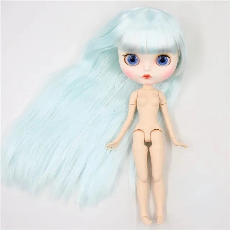 Blythe Doll Azure Hair White Skin Matte Face Interactive Toys 4 Eye Color Puppet There are just Limited quantity available! Get yours NOW before we run out!!! Step into a world of creativity and magic with our stunning 12-inch Blythe doll! Perfect for collectors and doll enthusiasts, this Blythe doll is ready to captivate hearts with her unique charm and endless possibilities for customization. Features: ✨ Expressive Eyes: Four different eye colors and positions with a simple pull of a string, reflecting her many moods and styles. 👗 Customizable Beauty: Change her hair, makeup, and style to create a doll that’s uniquely yours. 🌈 Premium Quality: Crafted from durable, high-quality materials to ensure she stands the test of time. 📏 Perfect Size: At 12 inches tall, she's the ideal size for both play and display. Why You'll Love Our 12" Blythe Doll: Endless Creativity: Perfect for photography, crafting, and artistic projects, she’s a blank canvas for your imagination. Community Connection: Join a worldwide network of Blythe enthusiasts who share your passion and creativity. Unique Gift Idea: A thoughtful and personalized gift for birthdays, holidays, or any special occasion, sure to delight both children and adults. Bring home the magic of the 12" Blythe doll today and dive into a world where imagination knows no bounds. Embrace the charm, creativity, and joy that only a Blythe doll can offer. Order now and let the adventures begin! Dolls are selling in nude, Not including clothes and accessories.