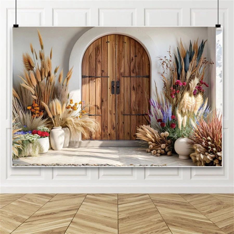 Bohemian Flowers Wedding Baby Shower Birthday Door Backdrop Photo Background