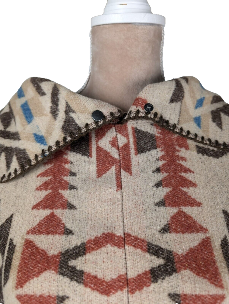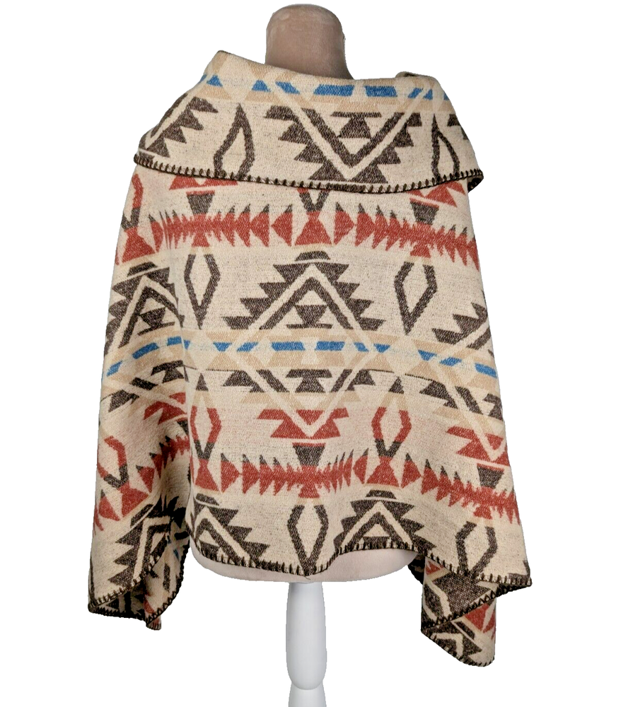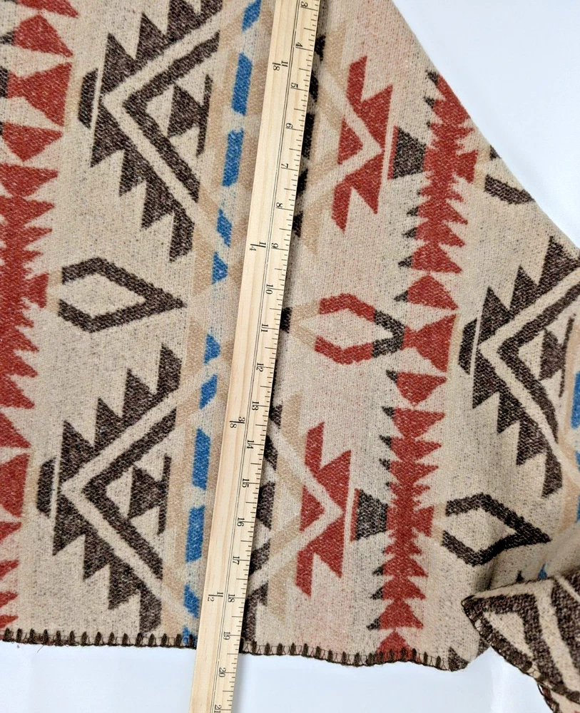 Bohemian Southwestern Aztec Tribal Style Fringe Poncho One Size Some fraying on bottom fringe hem- see photo See Photos for Pit to Pit and Shoulder to Hem Measurements Please let me know if you have any questions or need additional photos. Please Note - all items are described to the best of my ability and knowledge. Enlarge pictures and look carefully to identify any flaws or wear. If you are dissatisfied with the item you receive, please contact me immediately and I will do my absolute best to resolve the situation. Items are stored & shipped from a smoke & pet free environment. However, items come from a variety of sources and may have been exposed to smoke or pets. If you are sensitive to these things please keep this in mind. Thank you and happy shopping!