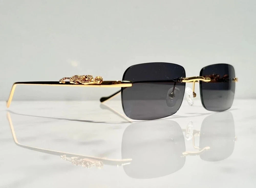 Brand: Bonano Model: Giaguaro Size: 54-18-140 Color: Gold :Handmade stainless steel construction plated in 18k gold :Handmade Jaguar adorns both left & right temple :18k gold plated metal frame inlay, temple and segments :Bonano Signature logo inlay inner right temple : Bonano CR-39 Non Prescription Clear Demo Lenses. :Comes with Bonano storage box, cleaning cloth, hard-case & frames + lenses :Frame Size 54-18-140 SHARE SHARE ON FACEBOOK TWEET TWEET ON TWITTER PIN IT PIN ON PINTEREST