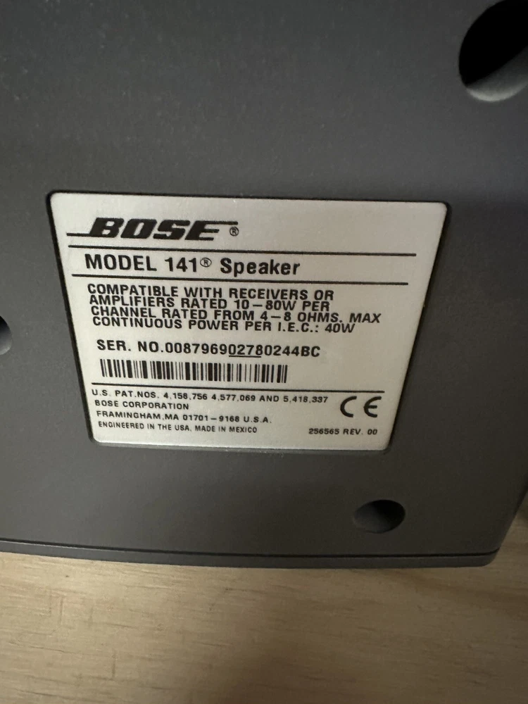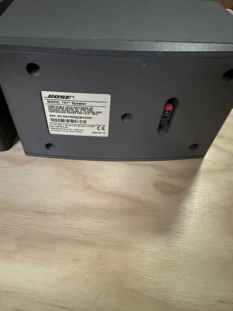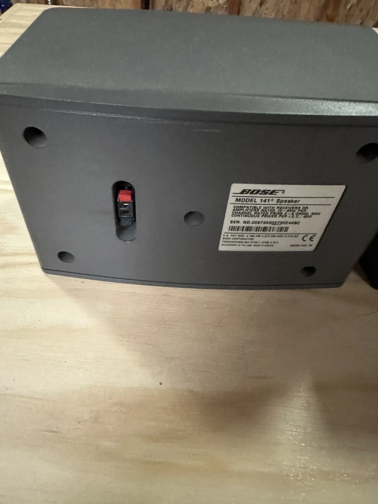 Shape:RectangularModel:Bose Model 141Brand:BoseUPC:Does not applygtin13:Does not applyAudio Inputs:Stereo WireColor:GrayCompatible Brand:UniversalImpedance:Rated from 4-8 OhmsConnectivity:WiredType:Bookshelf SpeakersCompatible Model:BoseFeatures:Compact, High End