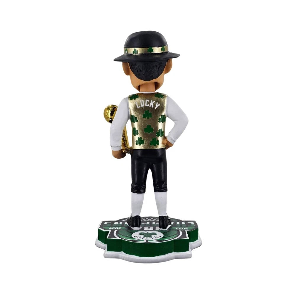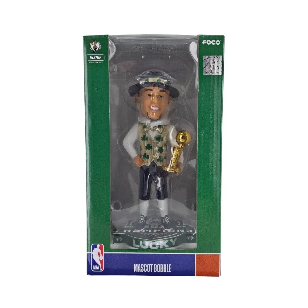 **BRAND NEW** LIMITED TIME ONLY - WHILE SUPPLIES LAST SPECIAL LIMITED QUANTITIES MADE Boston Celtics Mascot Lucky 2024 NBA Champions 8" Bobblehead Bobble Head Doll The champ is here. And by "here", what we mean to say is "in your collection." We think you'll agree that this Mascot Lucky Boston Celtics 2024 NBA Champions Bobblehead is ready to be the VIP of your party. Portrays Lucky posing in his white gameday uniform and holding the championship trophy, because he's GOTTA show off the hardware Commemorative championship logo display on top of base so you can keep the celebration going Front name display so everyone knows who the face of your franchise is Handcrafted Hand painted Height: Approximately 8 in., base included Limited Edition The product(s) you receive might vary slightly in appearance from the product's image on our website due to the nature of your product(s) being handmade. Please understand that all handmade items, by nature, may have imperfections. Although we are thorough, there can be inconsistencies based on the creative nature, and it is possible that one item may look a little different from the next. Our items may have natural and unique imperfections. Any item you purchase is one of a kind. There are no two items that are exactly the same. Not a toy Edition Size: 224 Individually numbered Officially licensed by the National Basketball Association © 2024 the National Basketball Players Association. All rights reserved. Your item is automatically insured! HAVE FUN!