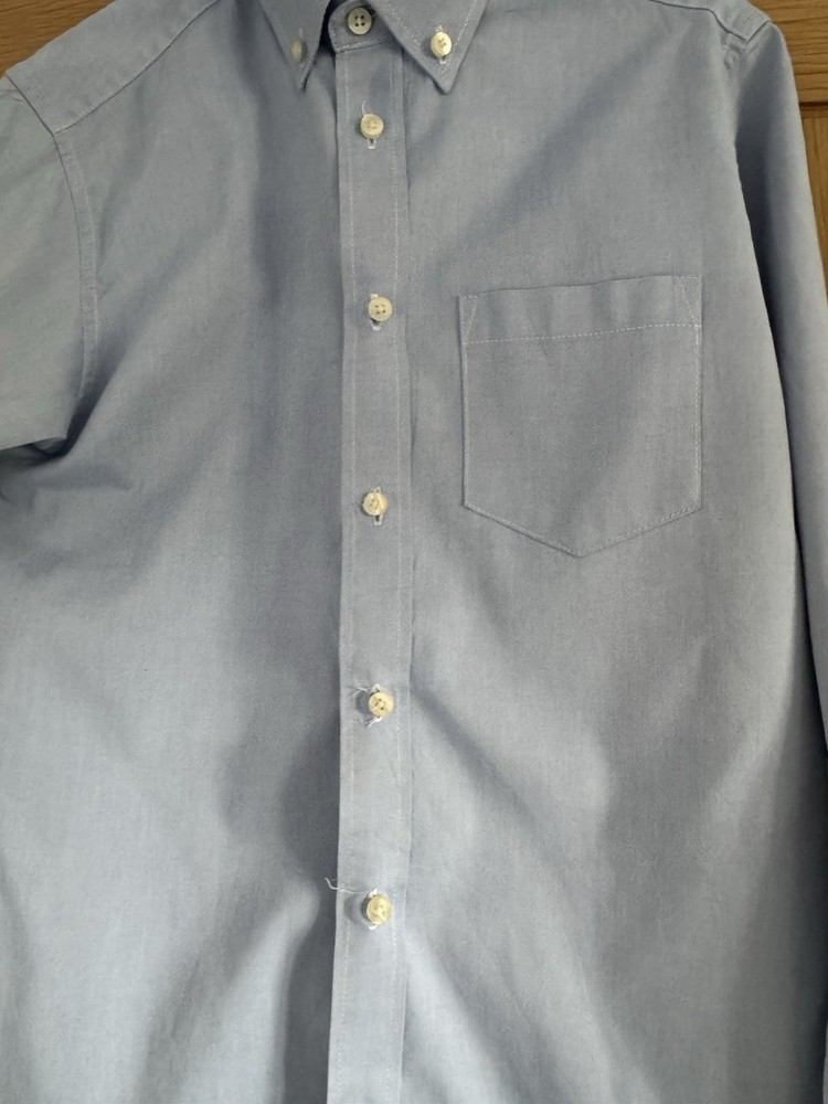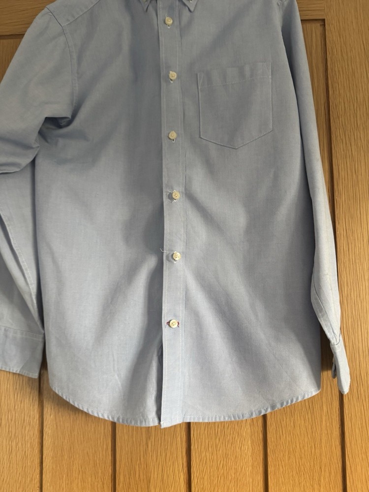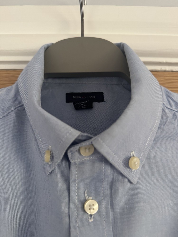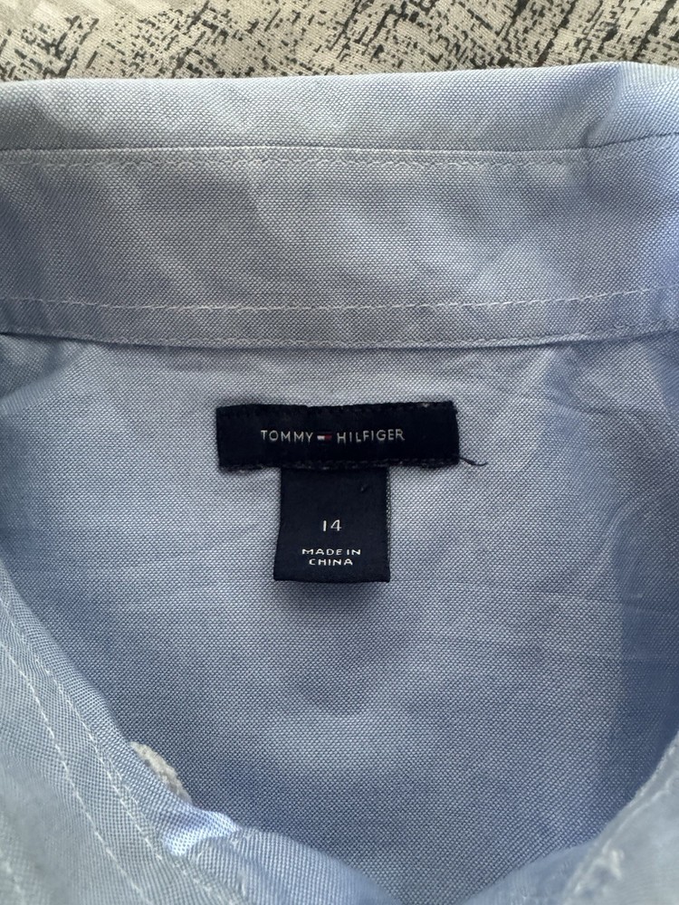This Boys Tommy Hilfiger Blue Shirt in size L (14) is a stylish and practical addition to any young boy's wardrobe. Made from comfortable cotton, this long-sleeved shirt features a collared neckline and button-up style, perfect for casual occasions. The classic blue colour and Tommy Hilfiger branding make it versatile for various seasons, while the regular fit ensures a comfortable and flattering look. Easy to care for with its machine washable design, this shirt is ideal for everyday wear and activities like walking.